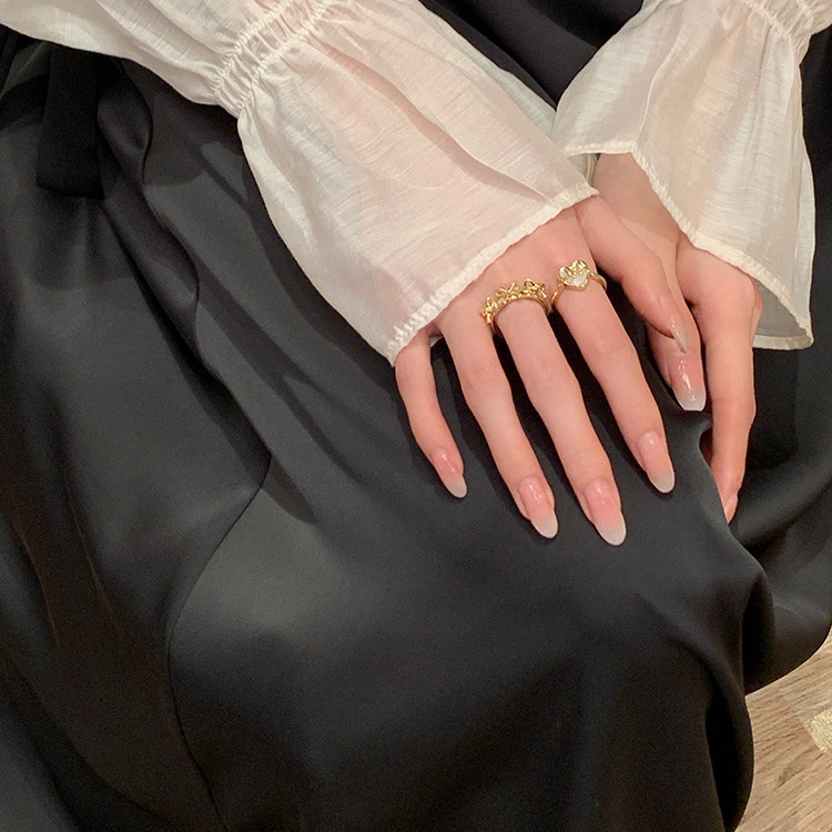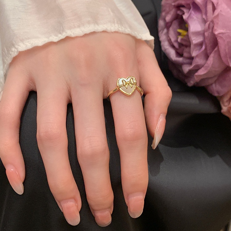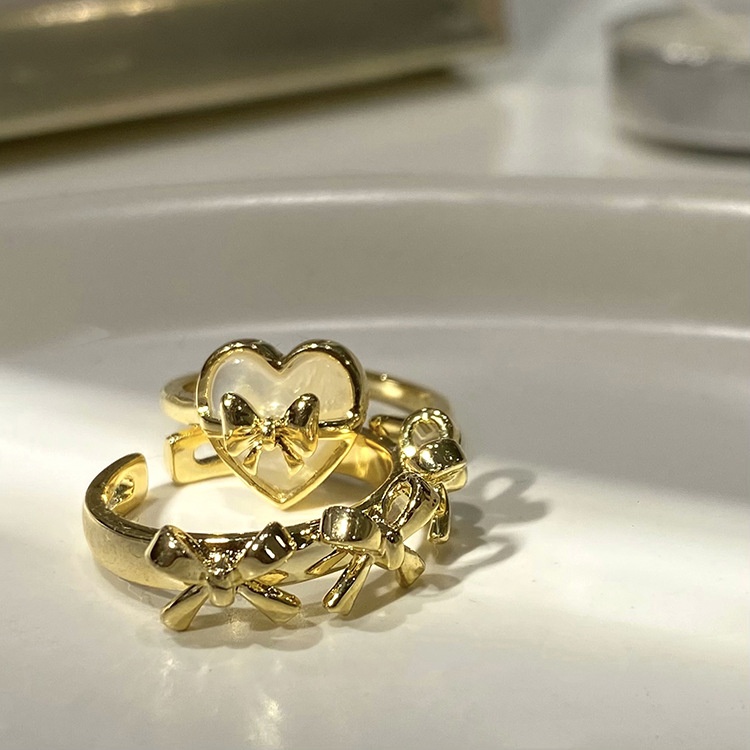 Korean Cat's Eye Stone Love Bow Golden Ring Women's Design Niche Adjustable Opening Finger Ring Advanced Sense
