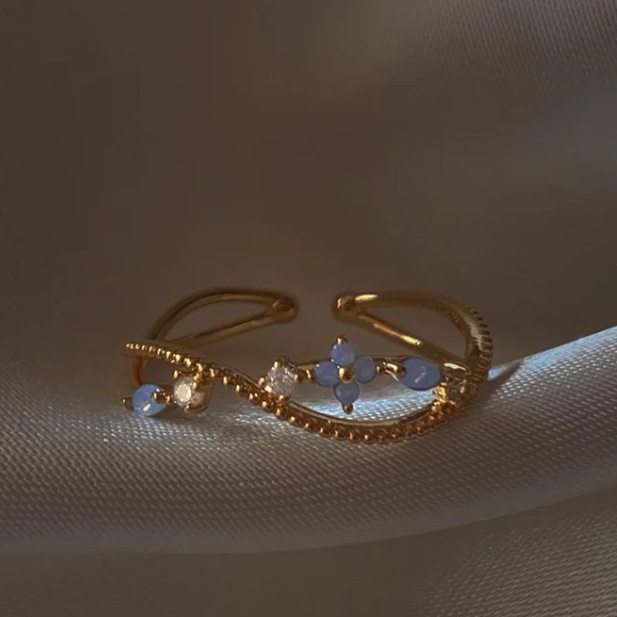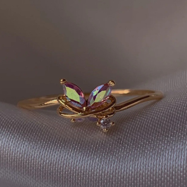 Europe And The United States Wind Color Zircon Multi-element Heart-shaped Bow Flower Ring Index Finger Opening Ring