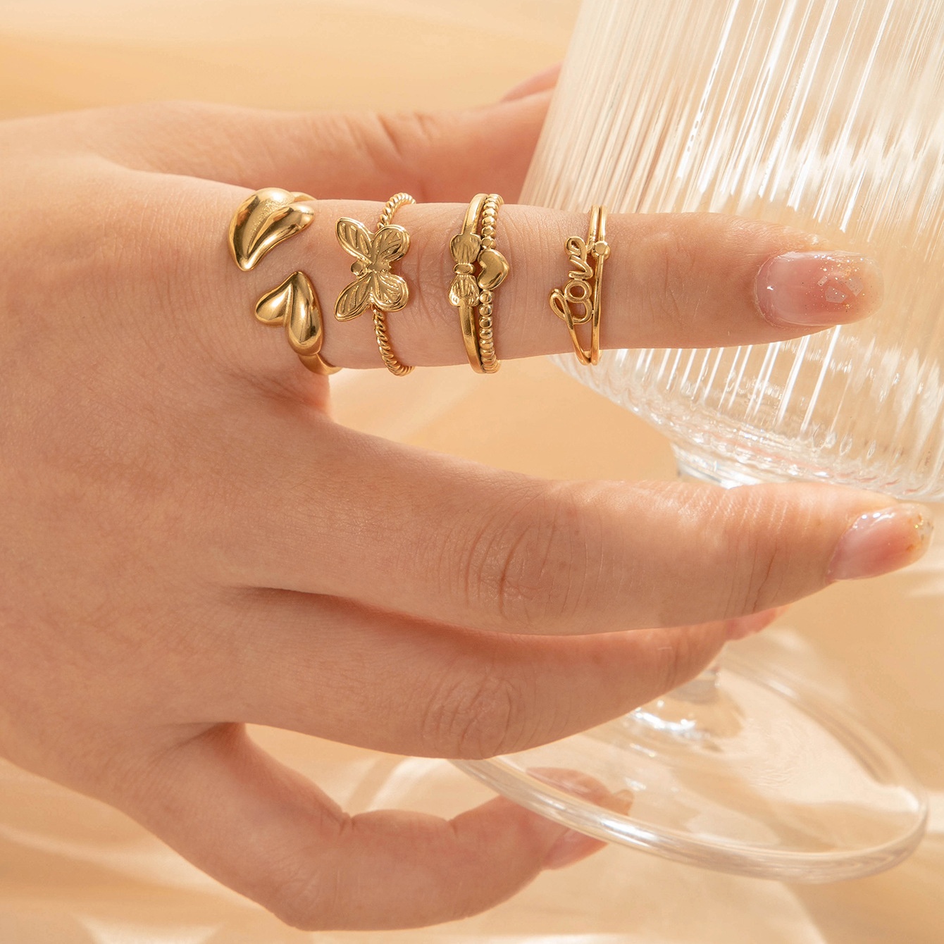 Titanium Steel Fashion Simple Love Heart-shaped Bow Stainless Steel Cute Sweet Opening Adjustable Ring