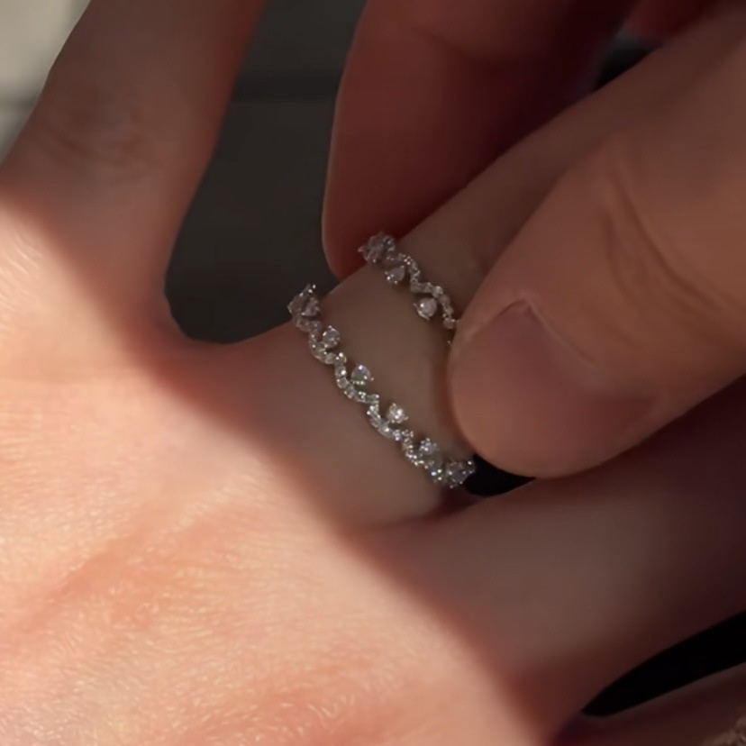 Little Red Book Small Crown Lace Rai Diamond Ring Women's Light Luxury High-end Finger Ring Exquisite All-match Stacked Finger Ring