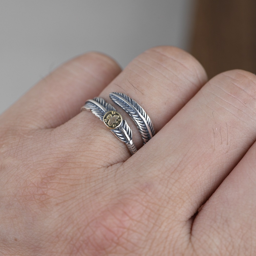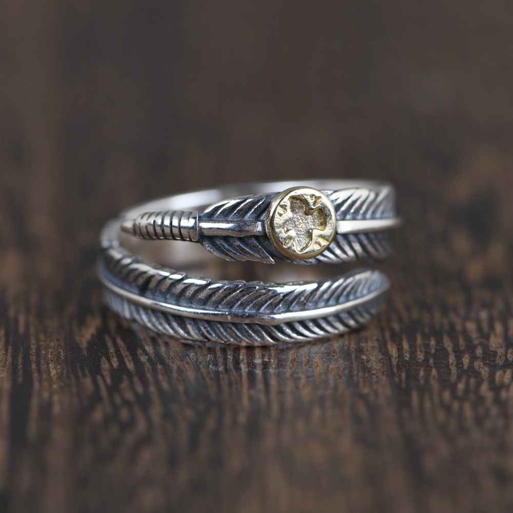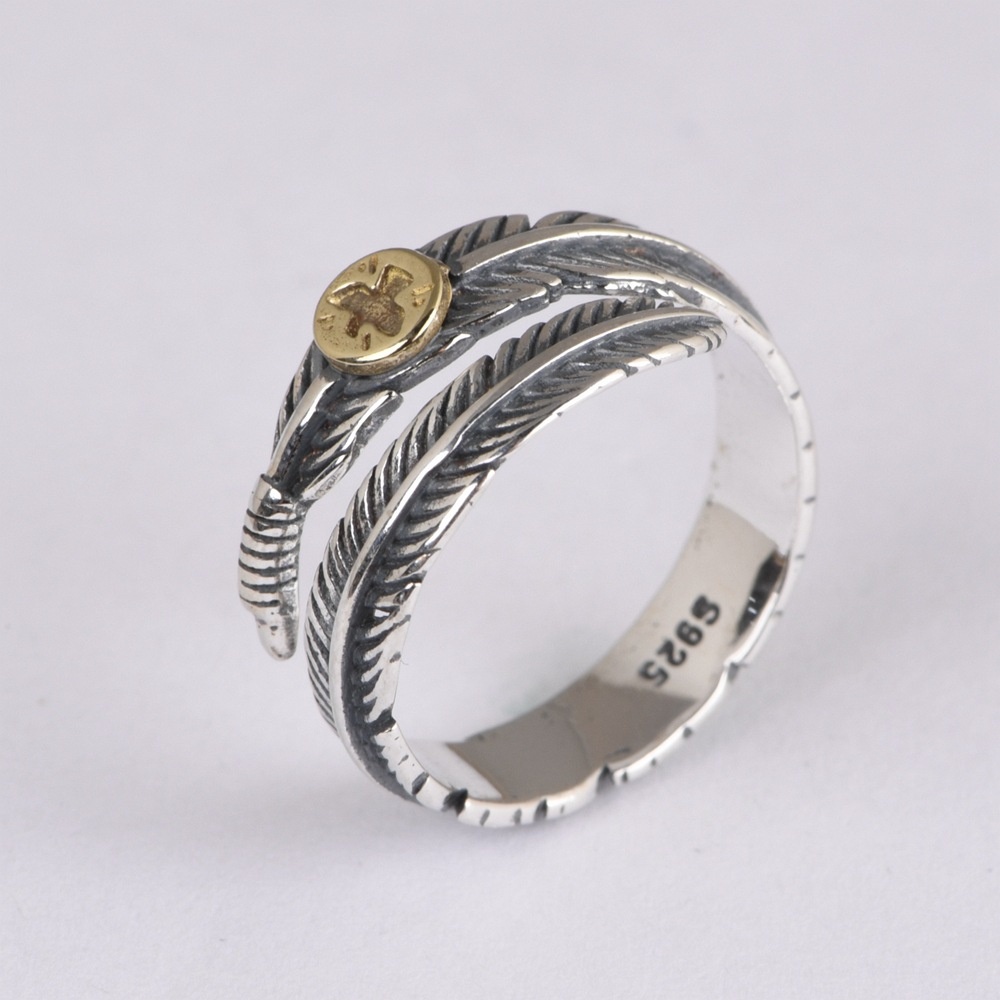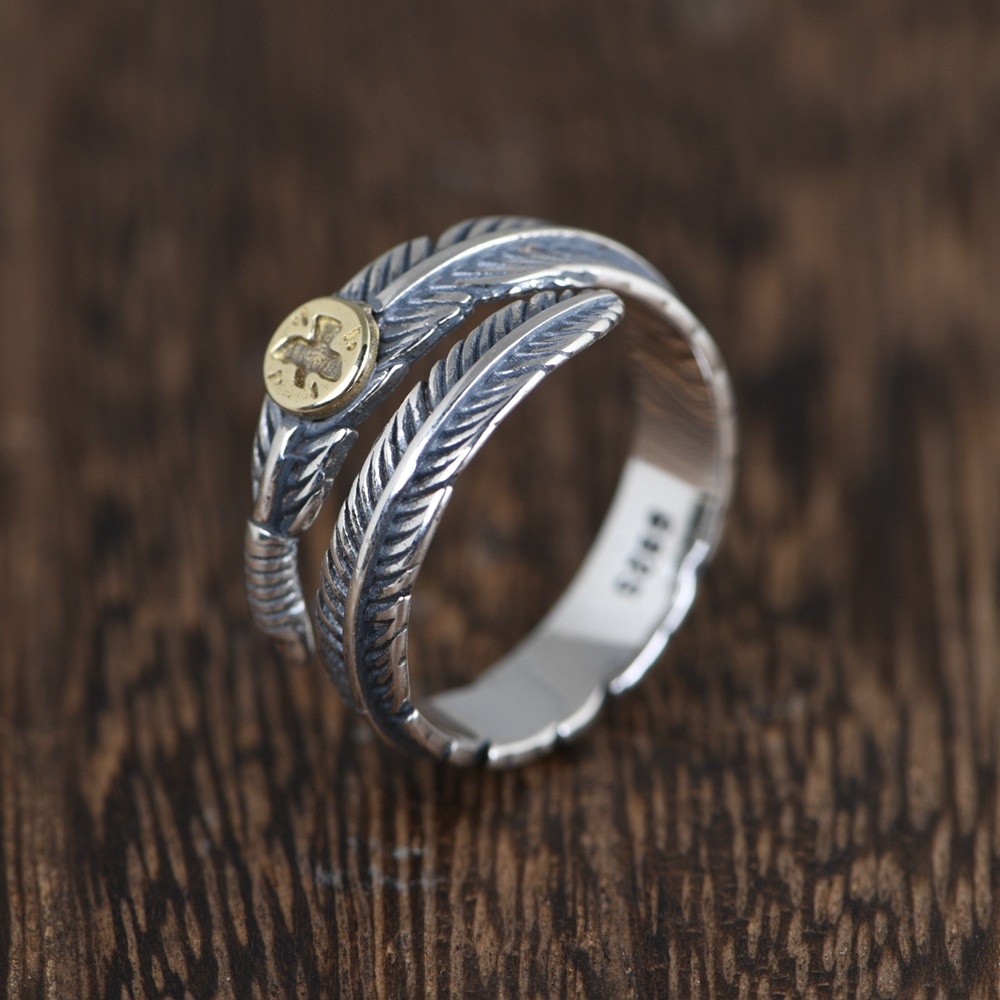 Golden Deer King S925 Silver Vintage Thai Silver Craft Silver Ring Opening Feather Silver Jewelry Bracelet