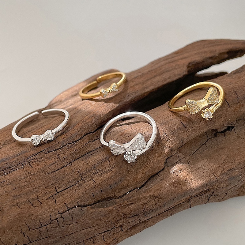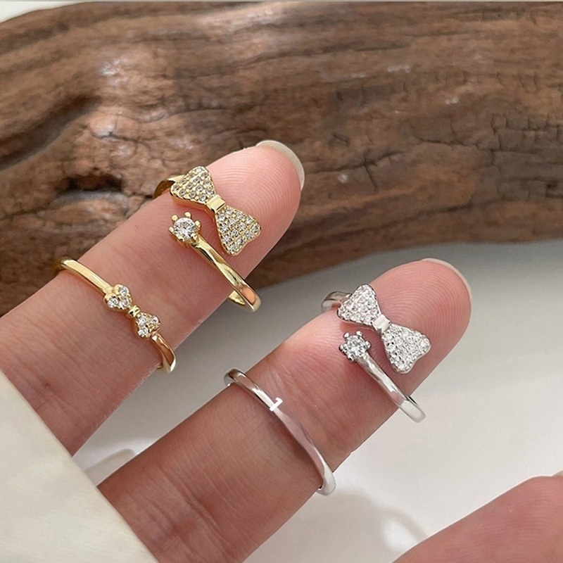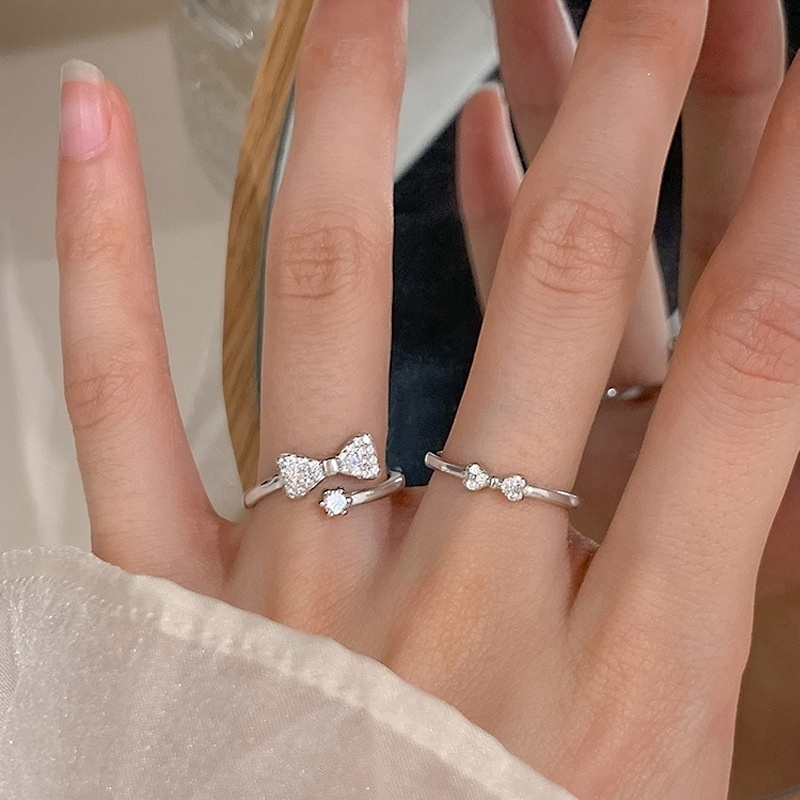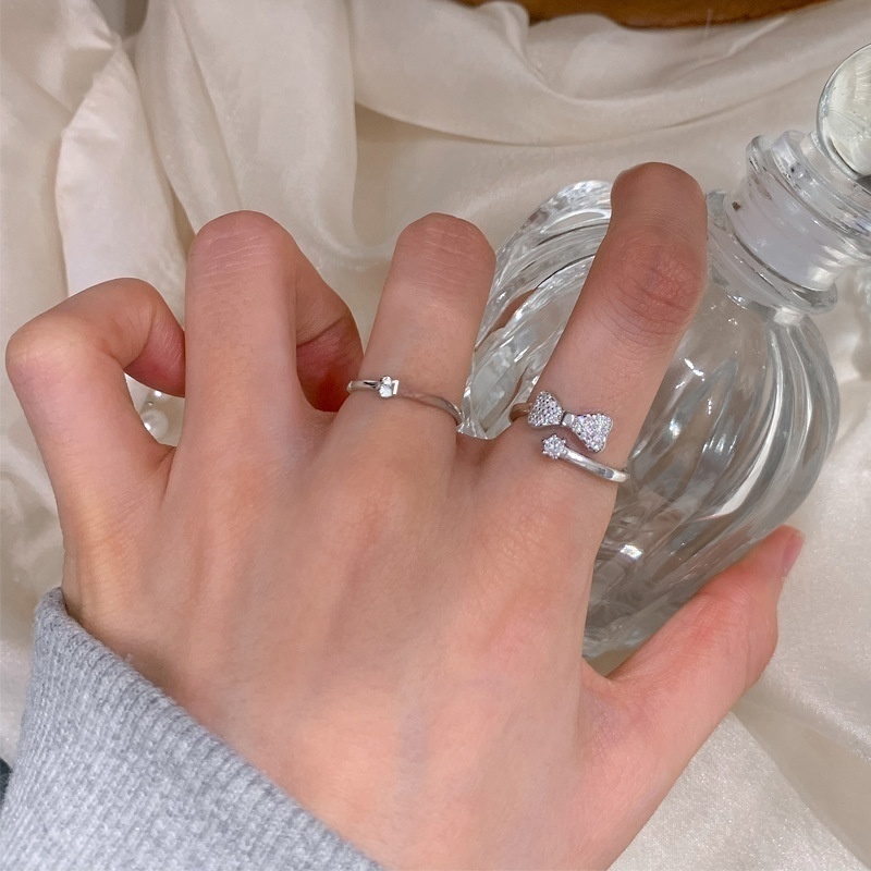 Sweet Super Flash Diamond Bow Open Ring Y Early Spring Pure Desire Wind Fairy Air Net Red Index Finger Ring