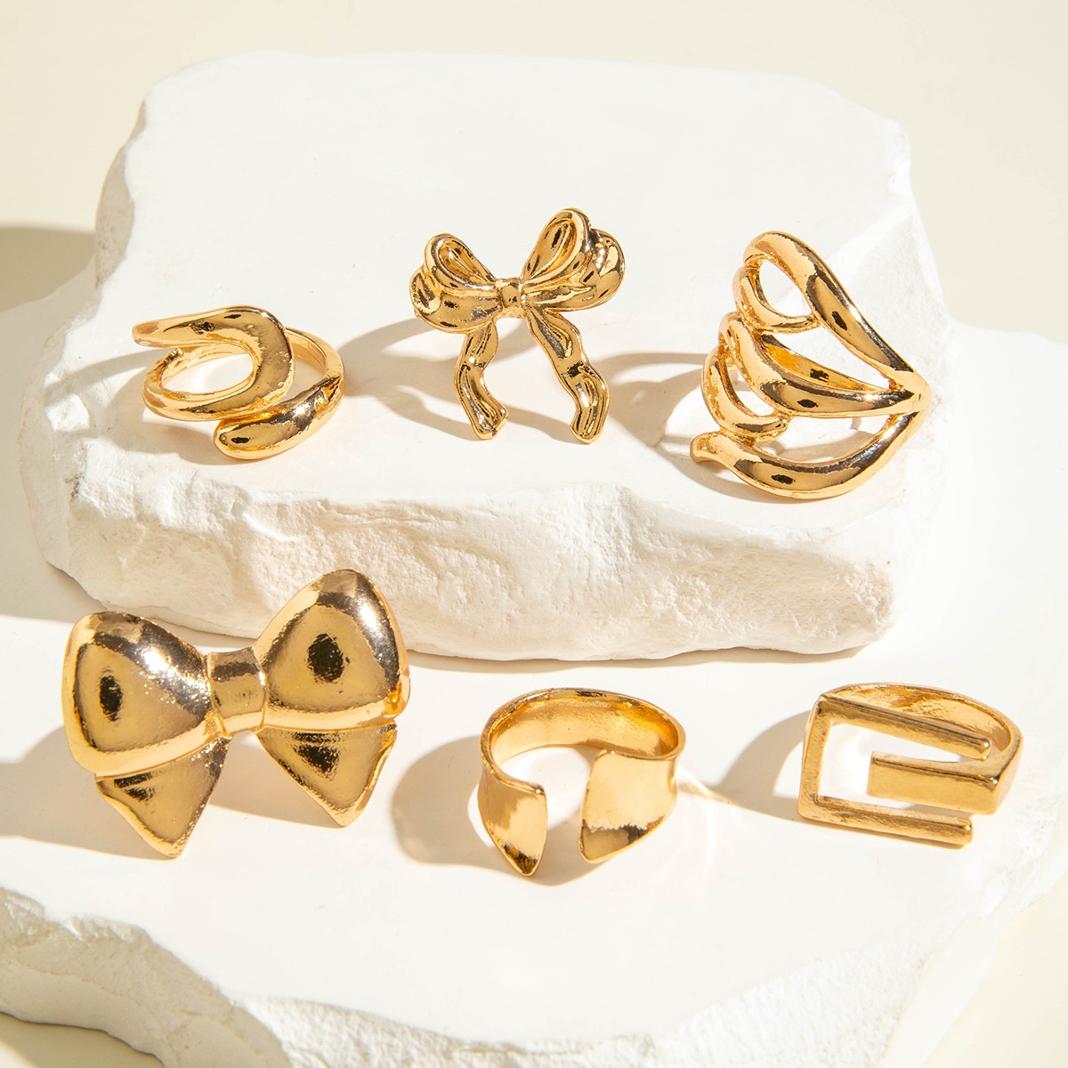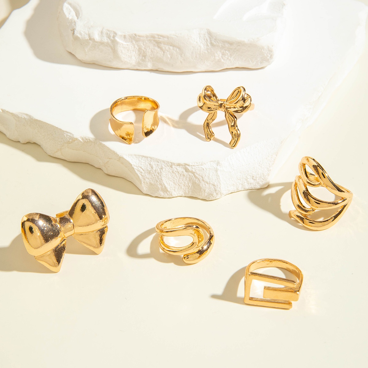 冷淡风蝴蝶结不规则镂空开口戒指 个性时尚质感花朵指环