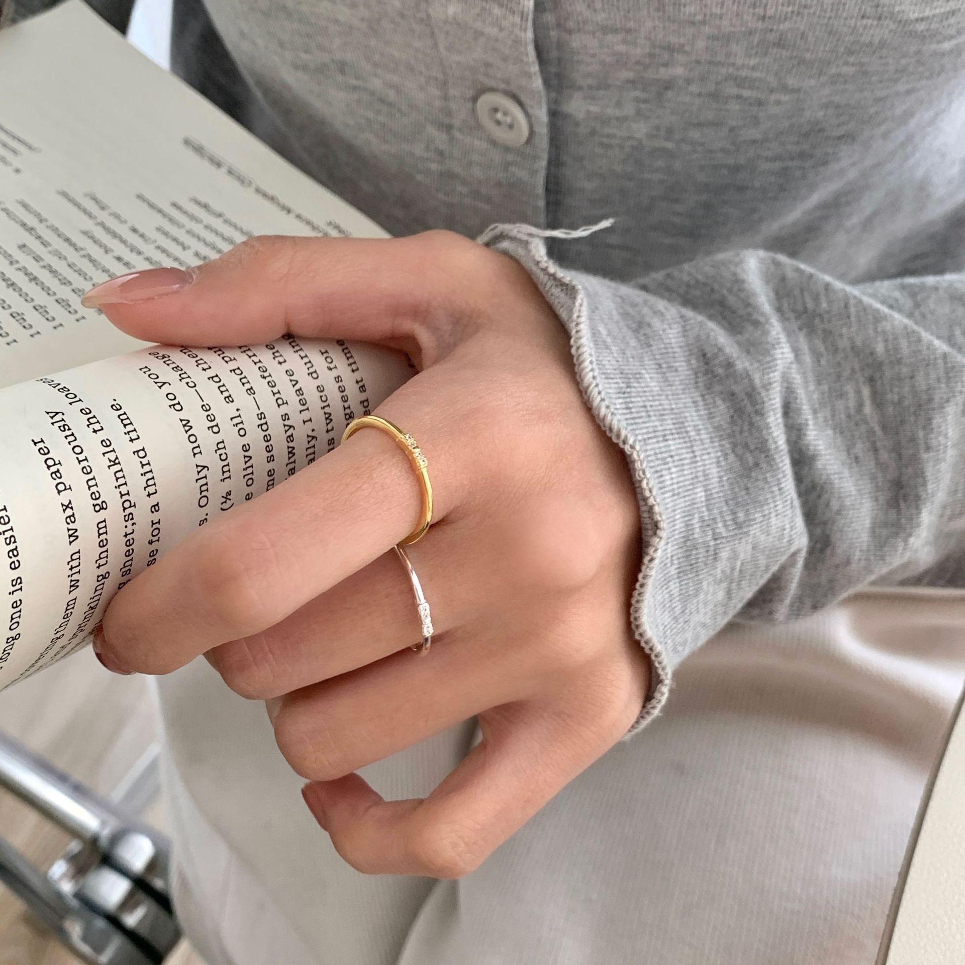 S925 Sterling Silver Bow Fragmented Diamond Thin Ring Women's Stacked South Korea Niche Design High-grade Sense Ring