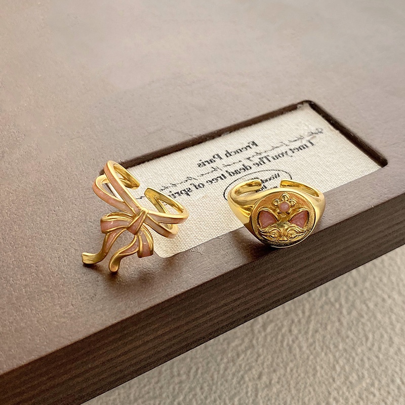 Sweet Cool Enamel Bow Ribbon Open Ring Women's Niche Creative Foreign-style Design Sense Food Finger Ring Pattern Jewelry