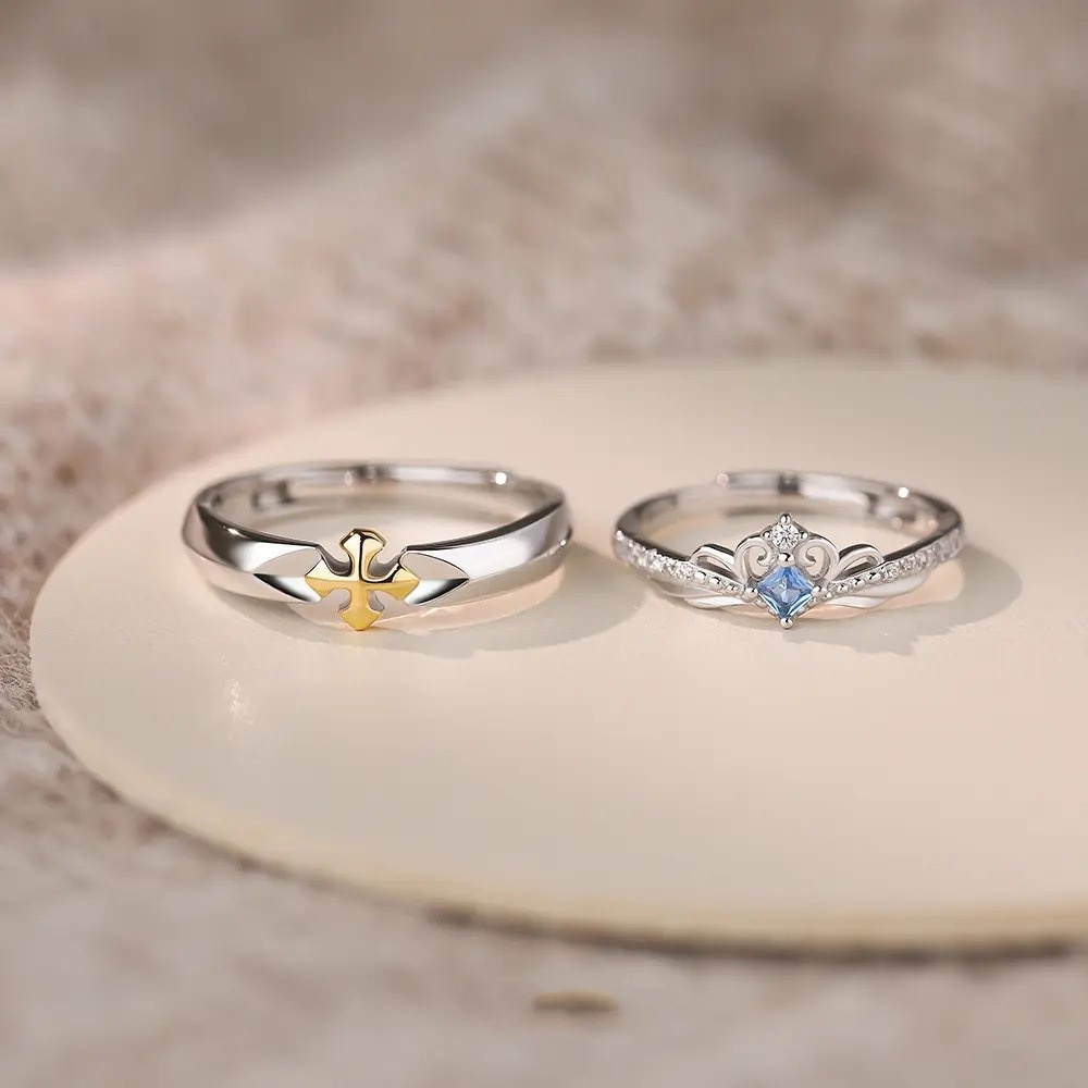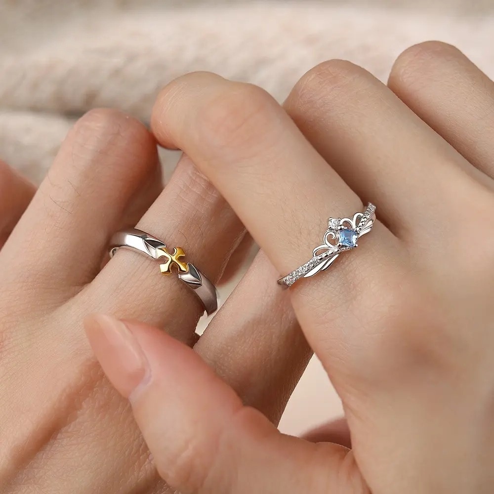 Princess And Knight Sterling Silver 999 Couple Ring Exquisite Crown Inlay Zircon Ring 520 Gift Jewelry