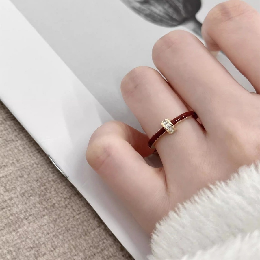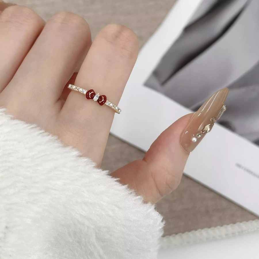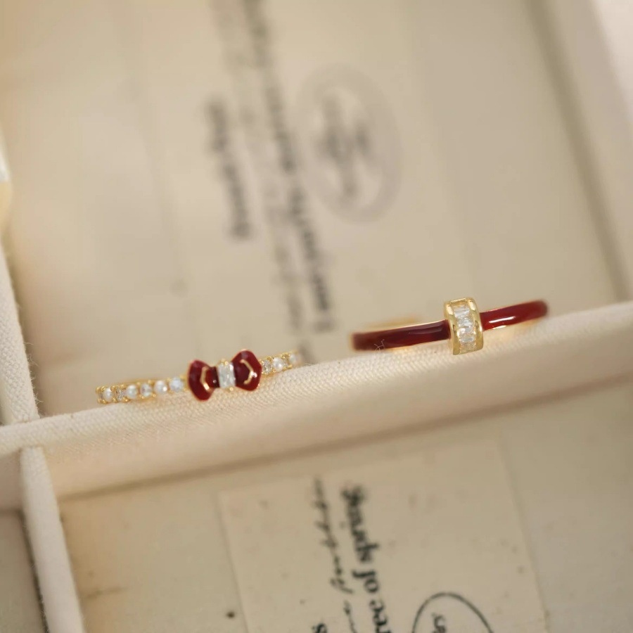 Angla Red F Enamel Bow Ring Women's 925 Sterling Silver Niche Design High-grade Light Luxury White Elegant Ring