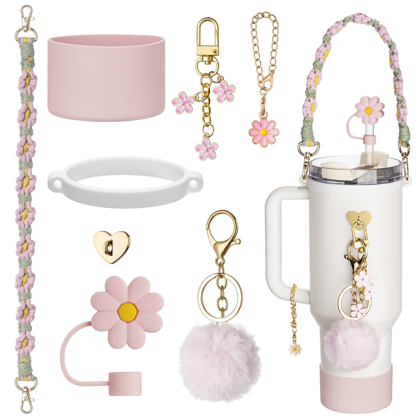 Stanley Cup Daisy Tote Rope Accessories Silicone Ring Flower Straw Cap Fur Ball Silicone Cup Holder Cover