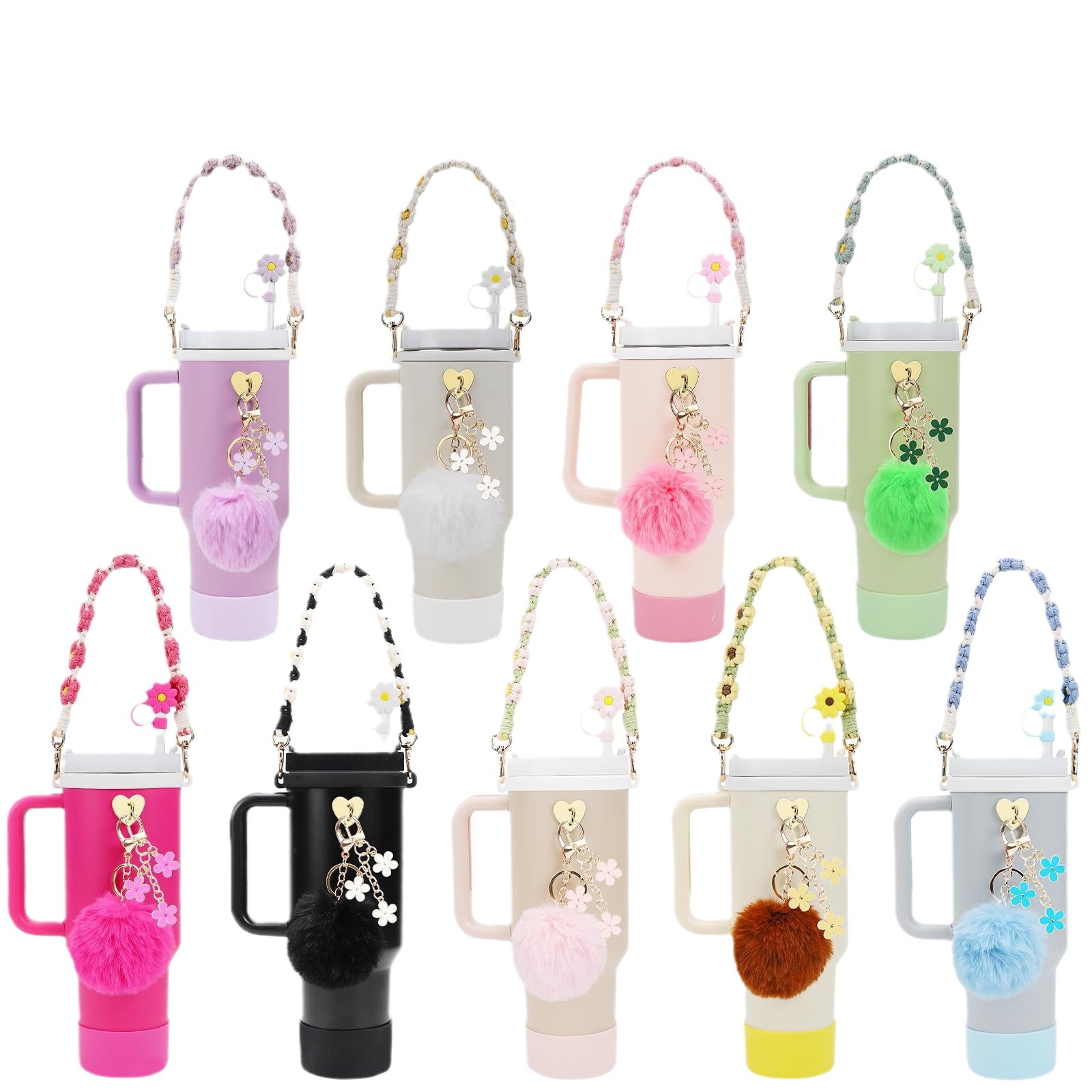 Specializes In Stanley Cup Colorfulful Flower Straw Hat Cup Set Cup Chain Flower Hair Ball Key Chain Pendant