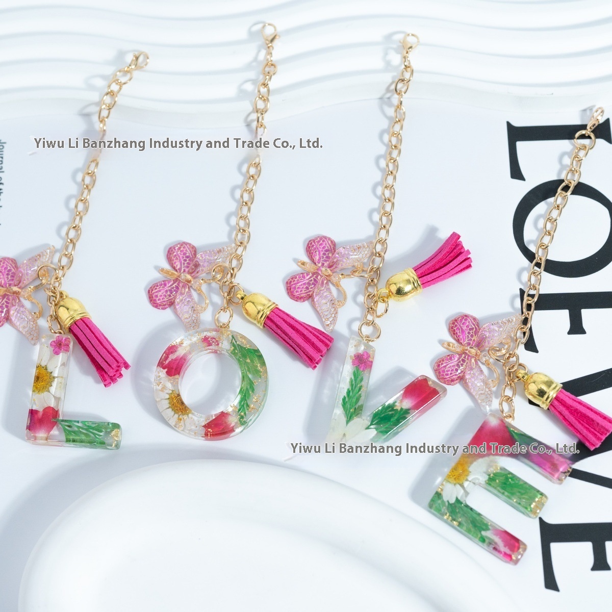 Stanley Creative Flower Letter Key Chain Pendant Cup Chain Butterfly Tassel Pendant Decorative Gift Key Chain