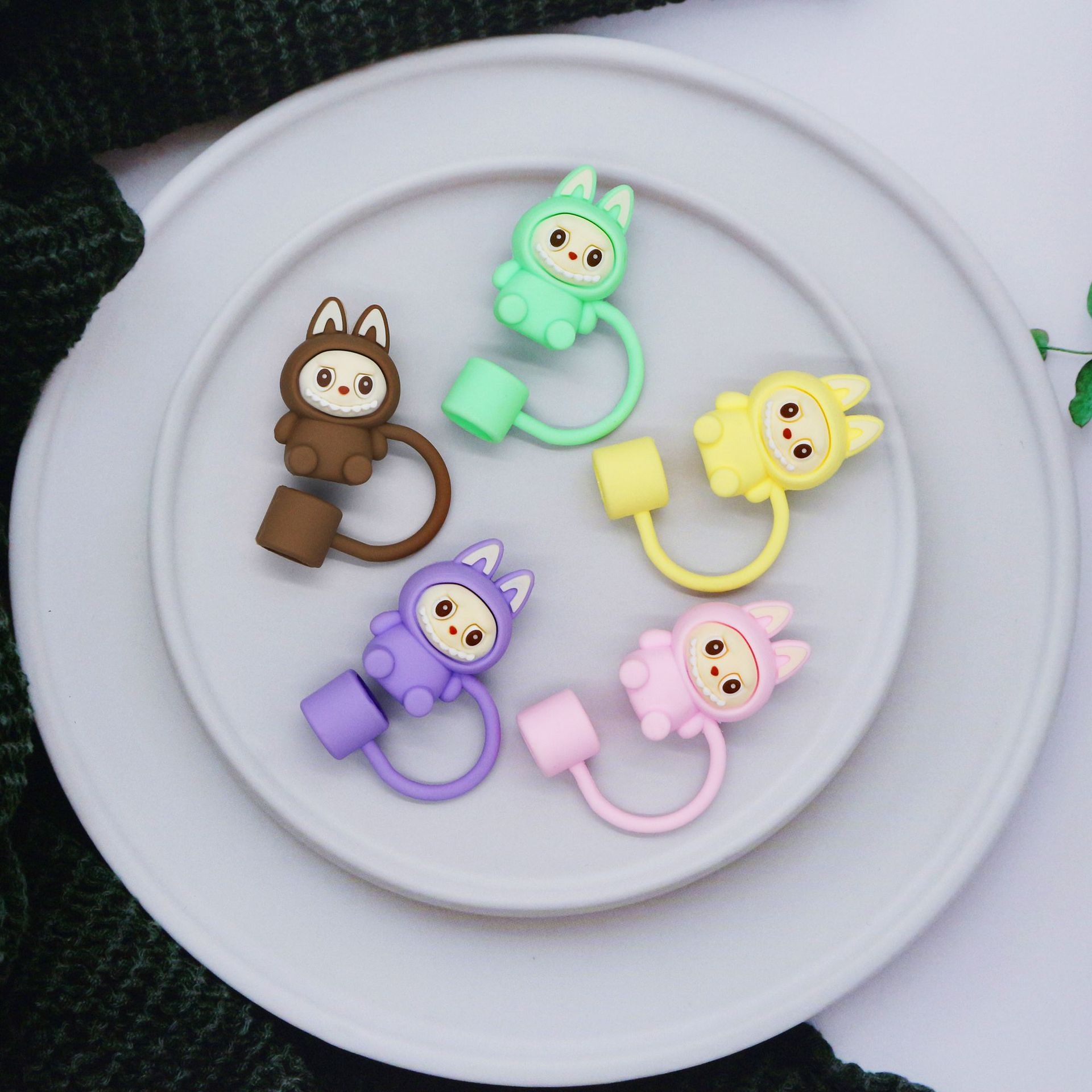 In Stock Rabbit Cloth Dust-proof Straw Cap Stanley Accessories Straw Plug 10mm Cartoon Straw Sleeve