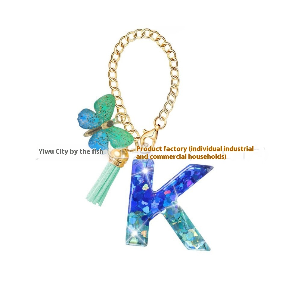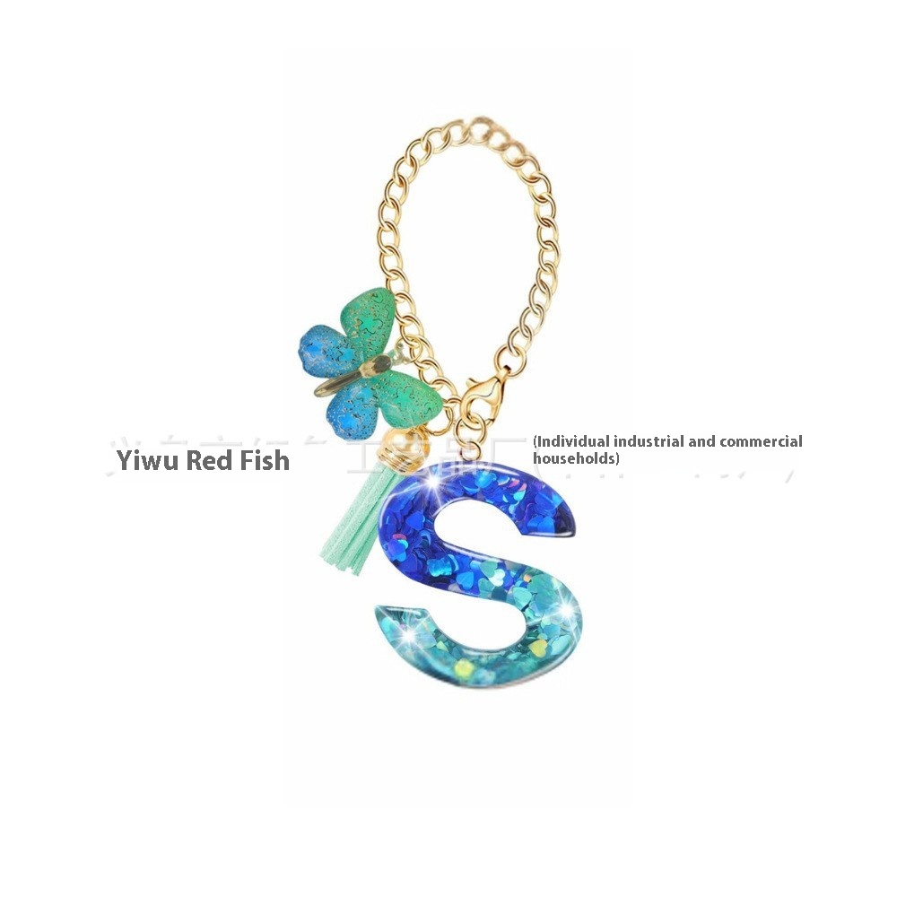 Butterfly Alphabet Cup Chain Keychain Stanley Cup Handle Pendant Women Student Backpack Accessories