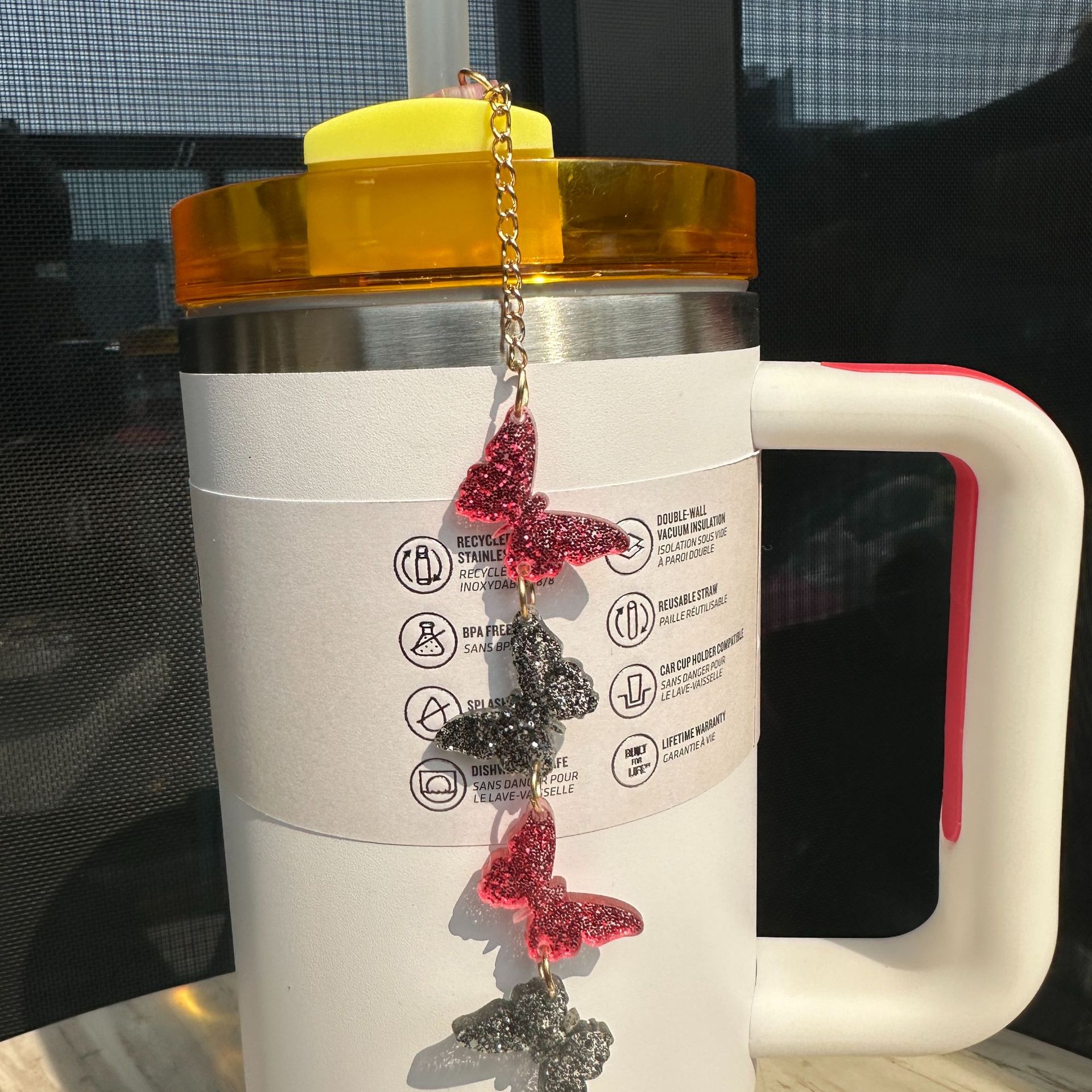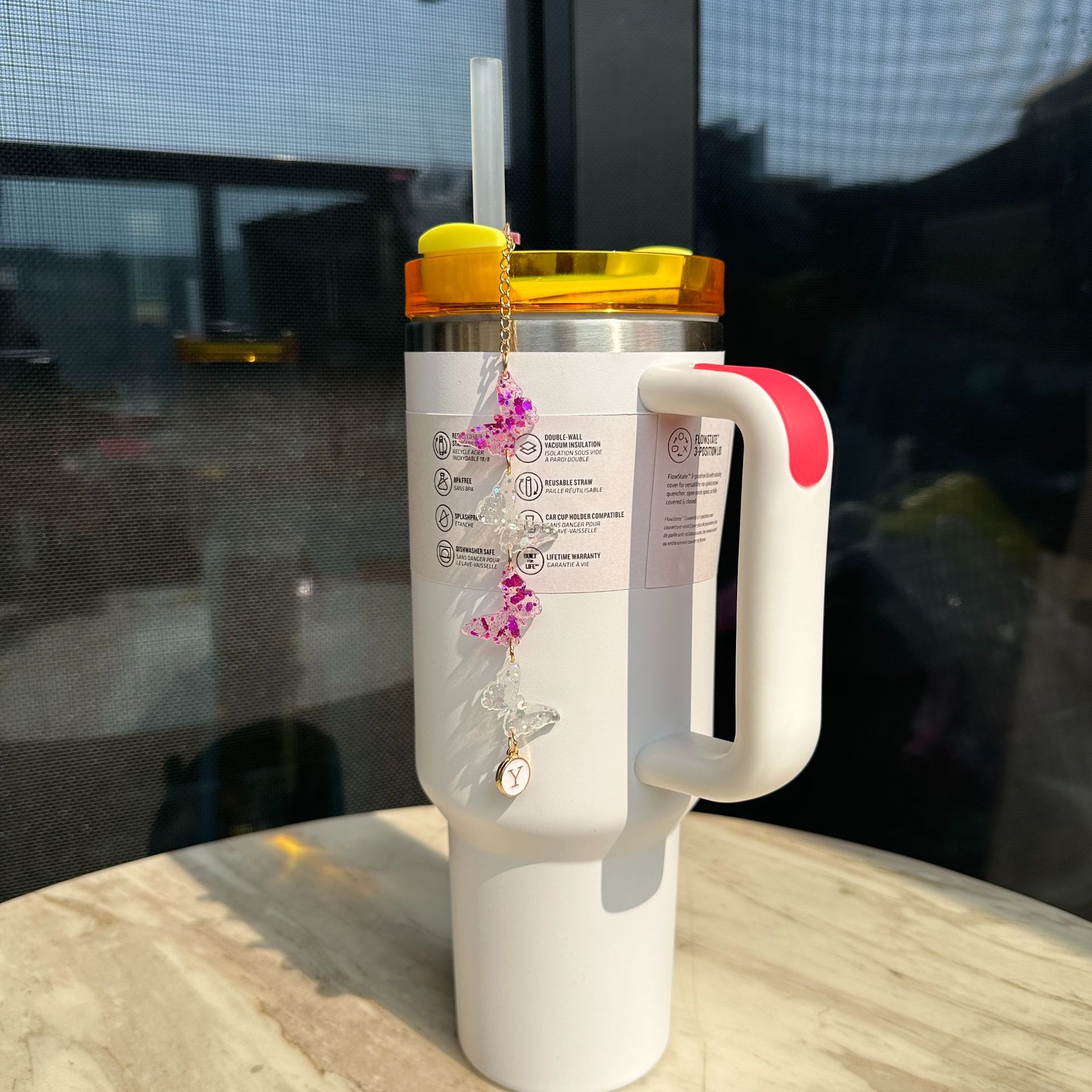 26 Letters Butterfly Pendant Accessories Water Cup Straw Pendant Butterfly Stanley Cup Hanging Pendant