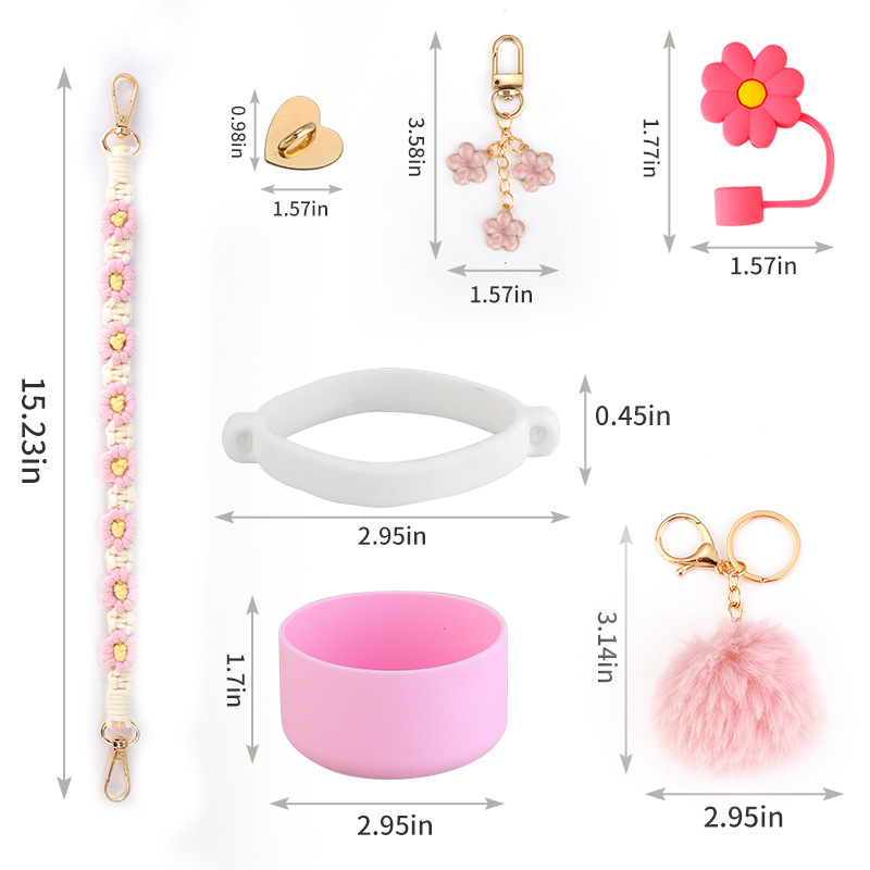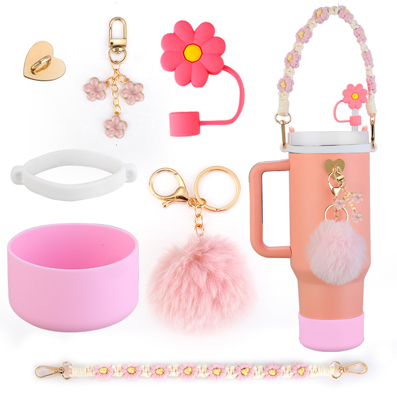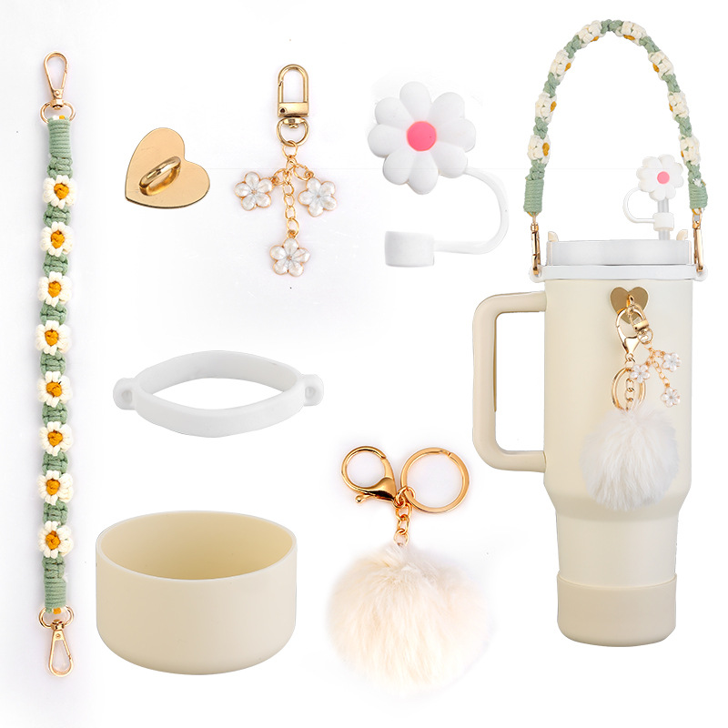 Stanley Accessories Silicone Ring Bohemian Daisy Lanyard Straw Cap Keychain Hanging Ornaments
