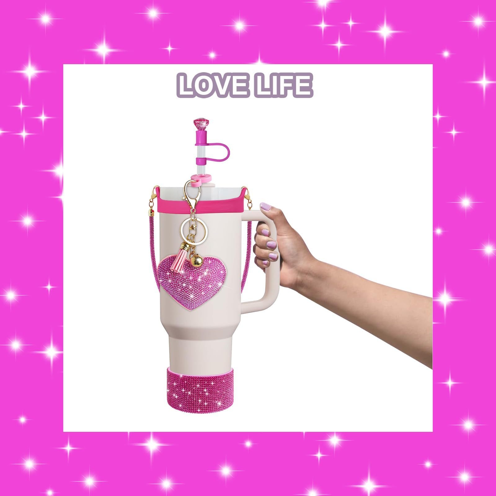 Stanley Cup Silicone Cup Set Shiny Love Keychain Pendant Diamond Straw Cap Portable Rope All Saints