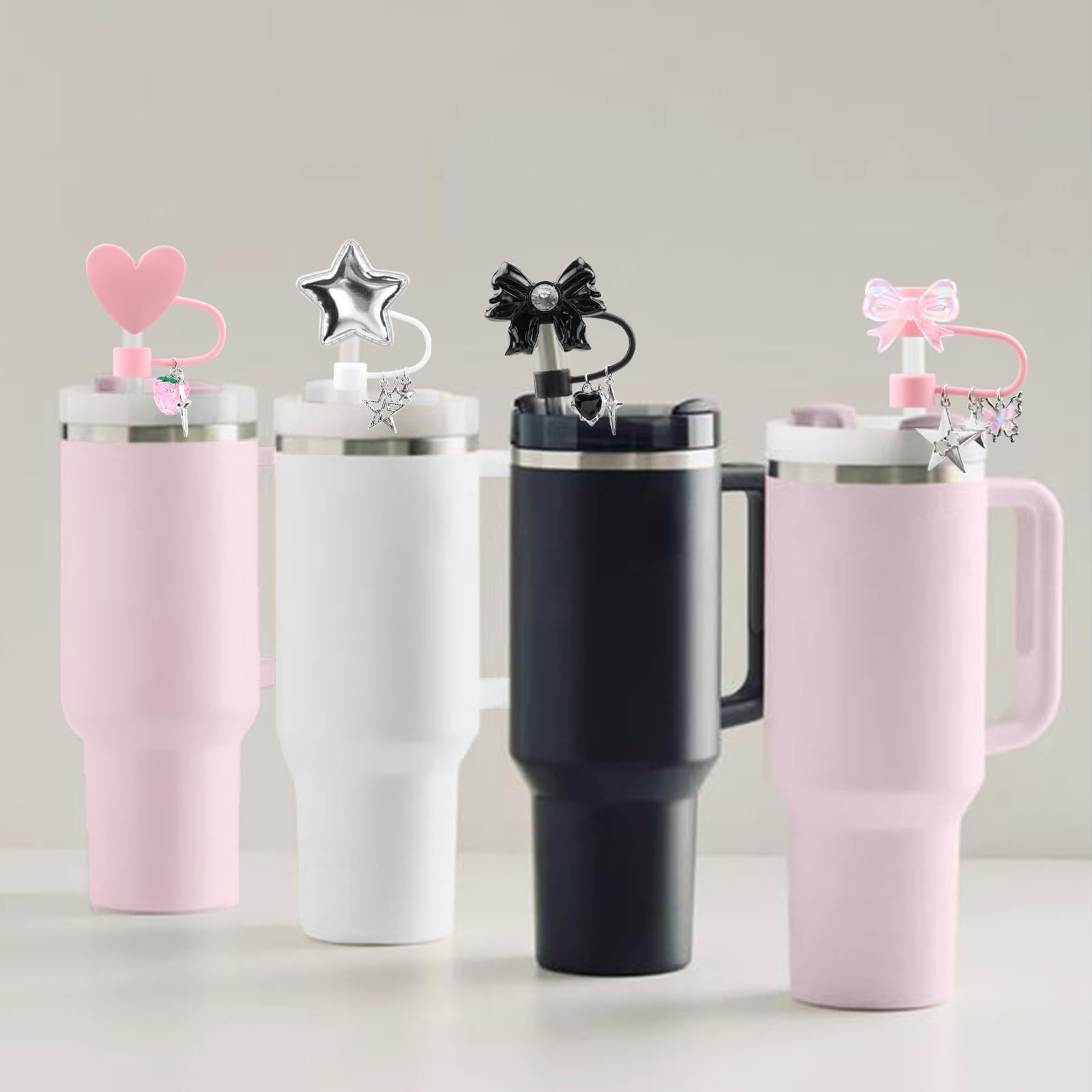 Suitable For Stanley Cup Love Silicone Straw Sleeve Glitter Star Heart Bow Resin Straw Cap