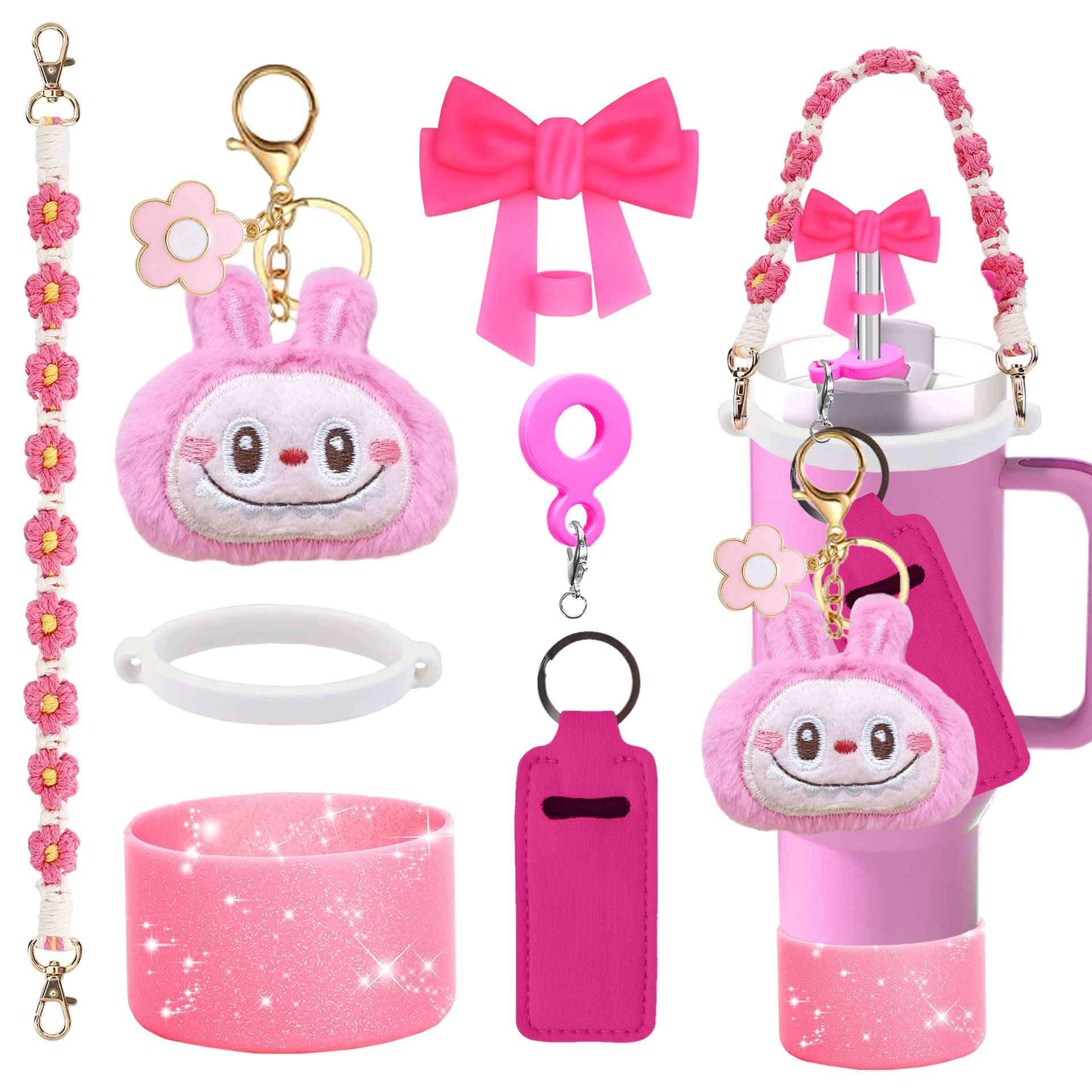 STANLEY ACCESSORIES Bow Straw Caps Hand-woven Hand-held Rope Flower Cloth Pendant Cup Holder Lipstick Bag