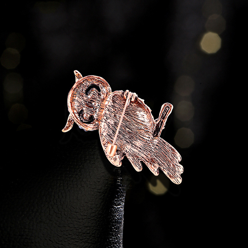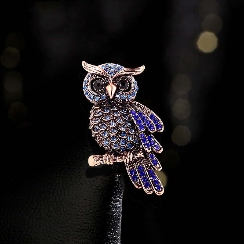 High-end Luxury Diamond-encrusted Blue Owl Brooch Pin