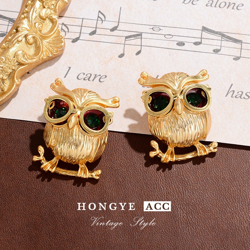 Vintage Owl Diamond Earrings Drop Oil Brooch Middle Ancient Jewelry High Sense Pin Garment