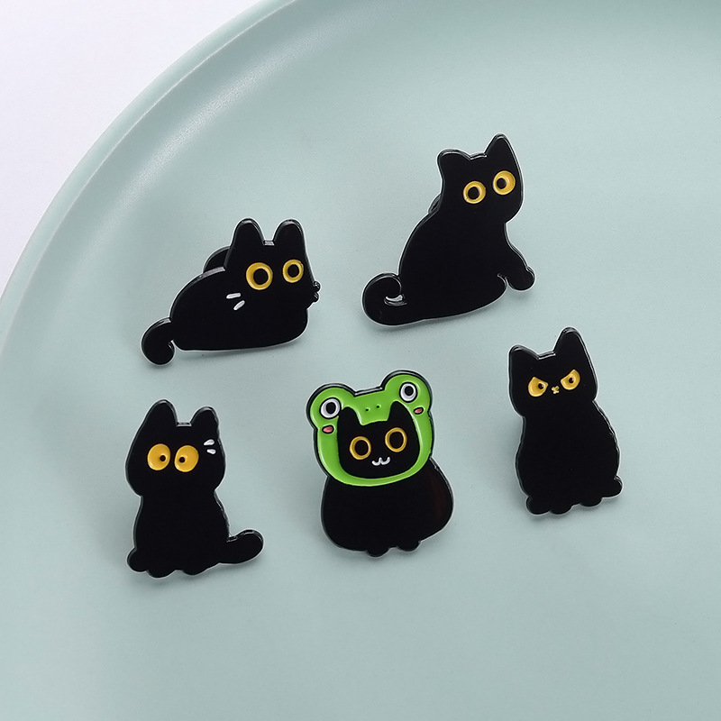 Cute Black Kitty Metal Brooch Badge Clothing Accessories Collar Pin Animal Pattern Decorations Pin