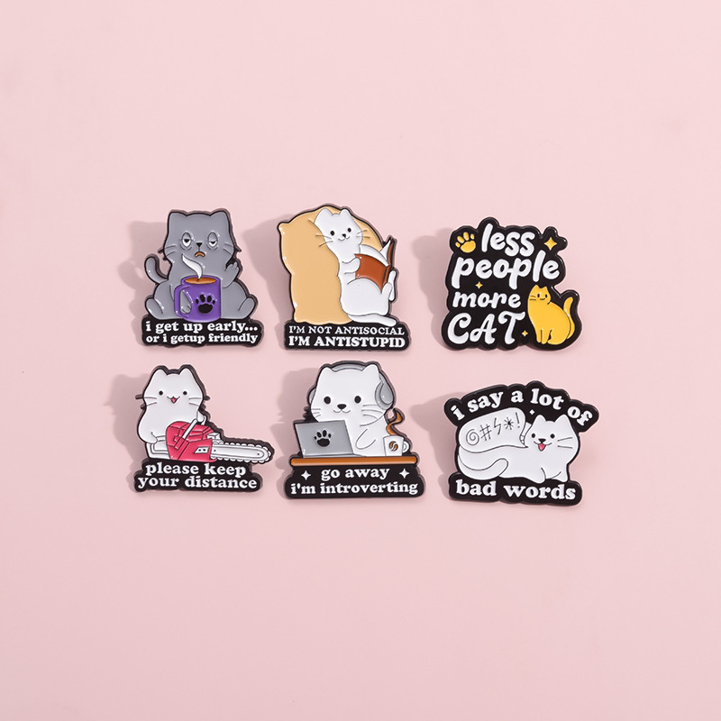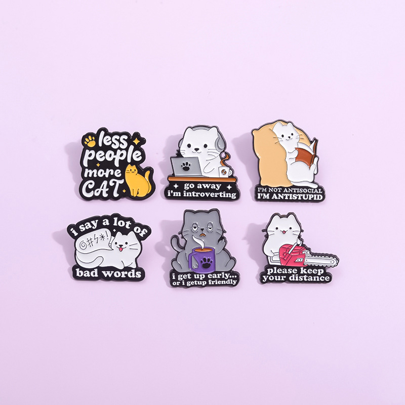 European And American Creative Cute Cat Shape Metal Badge Personality Simple English Letters Paint Accessories Brooch