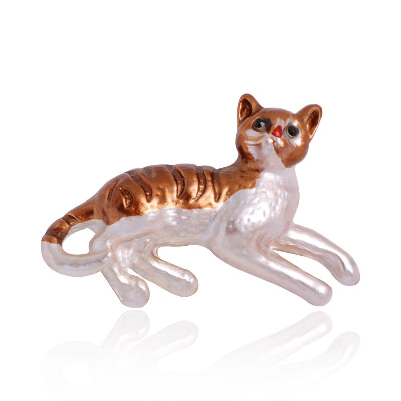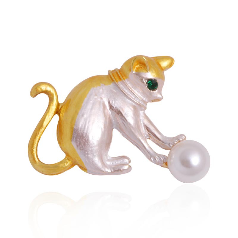 Custom European And American Drop Glaze Enamel Drop Oil Brooch Pearl Silk Towel Buckle Pin Cat Eye Stone Collar Pin Cat Brooch