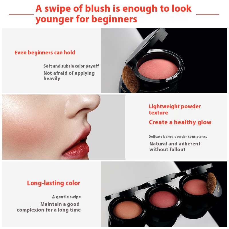 Lancer Skin-friendly Baking Powder Blush Lasting Concealer Moisturizing Natural Ruddy Transparent Makeup Waterproof Anti-sweat Rouge
