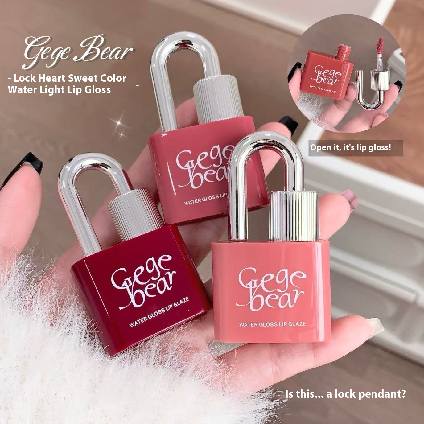 Gege Bear Gogo Bear Lock Heart Sweet Color Water Lip Glaze Soft And Sticky Lip Glaze To Enhance Color And Moisturizing Lip Glaze