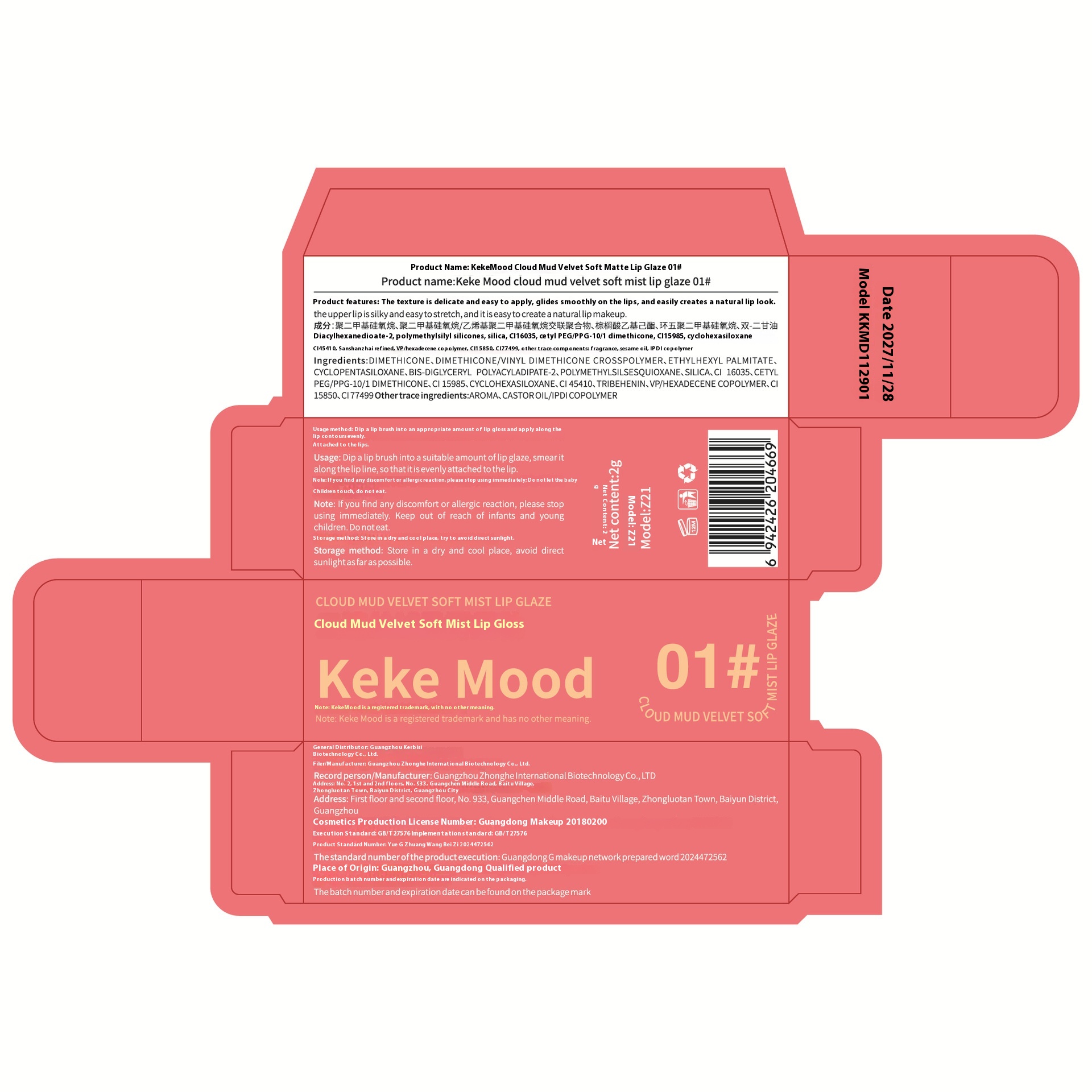 KekeMood Cloud Mud Velvet Matte Foggy Lip Glaze Lip Mud Not Easy To Stick Cup Student Party Pseudo Plain White Lipstick