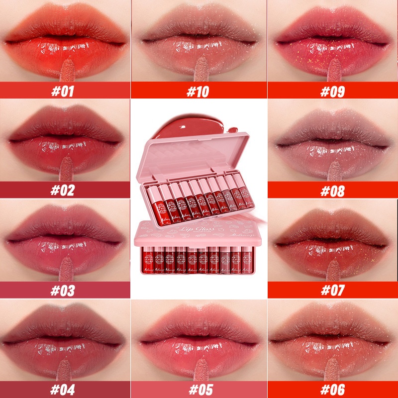 Special For 10-color Lip Glaze Moist Rich Lip Gloss Makeup Easy To Color Doodle Lip Lip Gloss Set Boxed