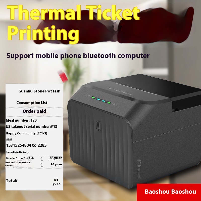 Meihengtong P58 D Bluetooth Thermal Takeout Receipt Printer Supermarket Receipt Cashier Baidu Meituan Are You Hungry?