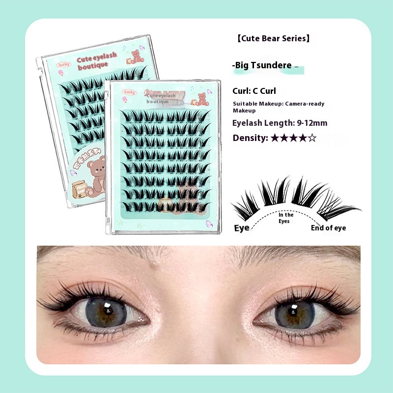 Cute Ciliary Shangpin Cute Bear Big Aojiao False Eyelash Slim Long Curly Thick Segmented Single-plant Mirror Eyelash