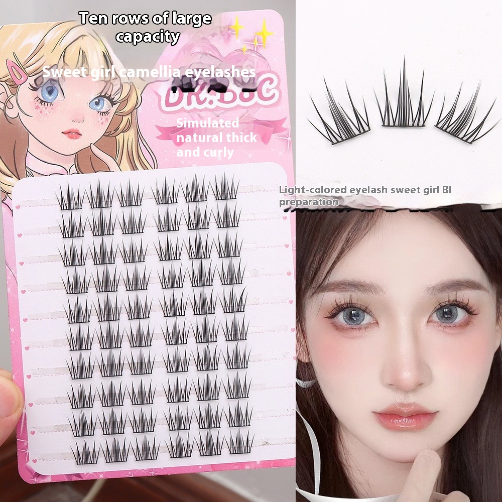 Sweet Sister Camellia Eyelashes Large Capacity Natural Simulation Women's Group False Eyelashes Segmented Single Cluster Curling Novice Party
