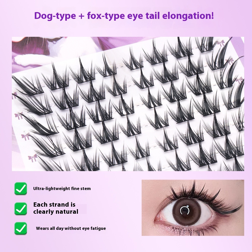 Night Elf Fox Cartoon Eyelash False Eyelash Fox Series Oblique Flying Dog Series Thick Curly Thin Stem Segmented Soft