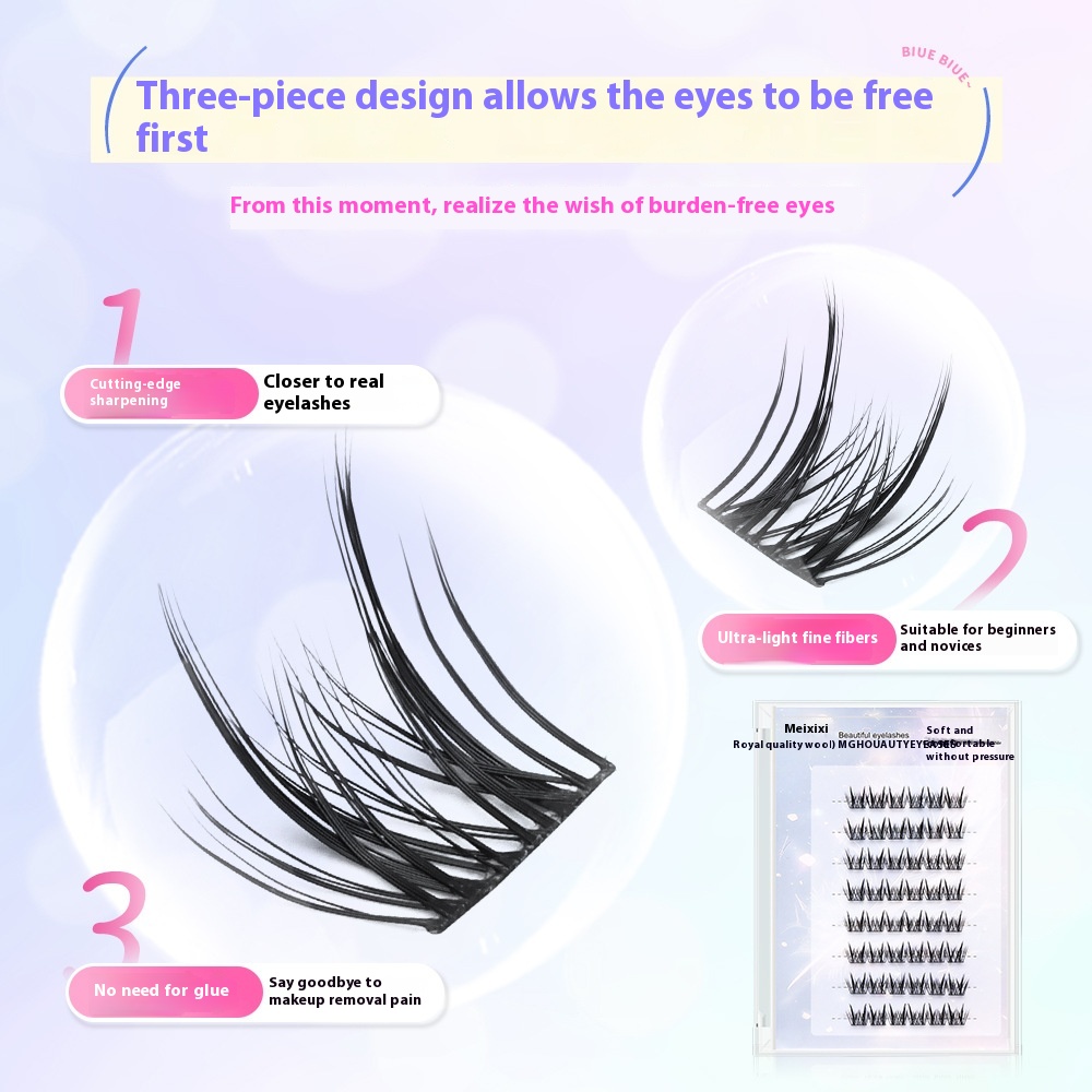 Meixi Light Feather Series Rat Style Fluffy Natural Mirror Style Curled Upper Eyelash Self-adhesive No-release False Eyelash