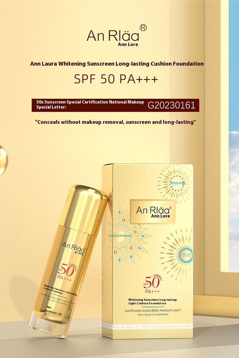 Anluola Whitening Sunscreen Foundation Long-Lasting Makeup Light Cushion Foundation Spf50+ Concealer Long-Lasting Moisturizing Oil Control Primer