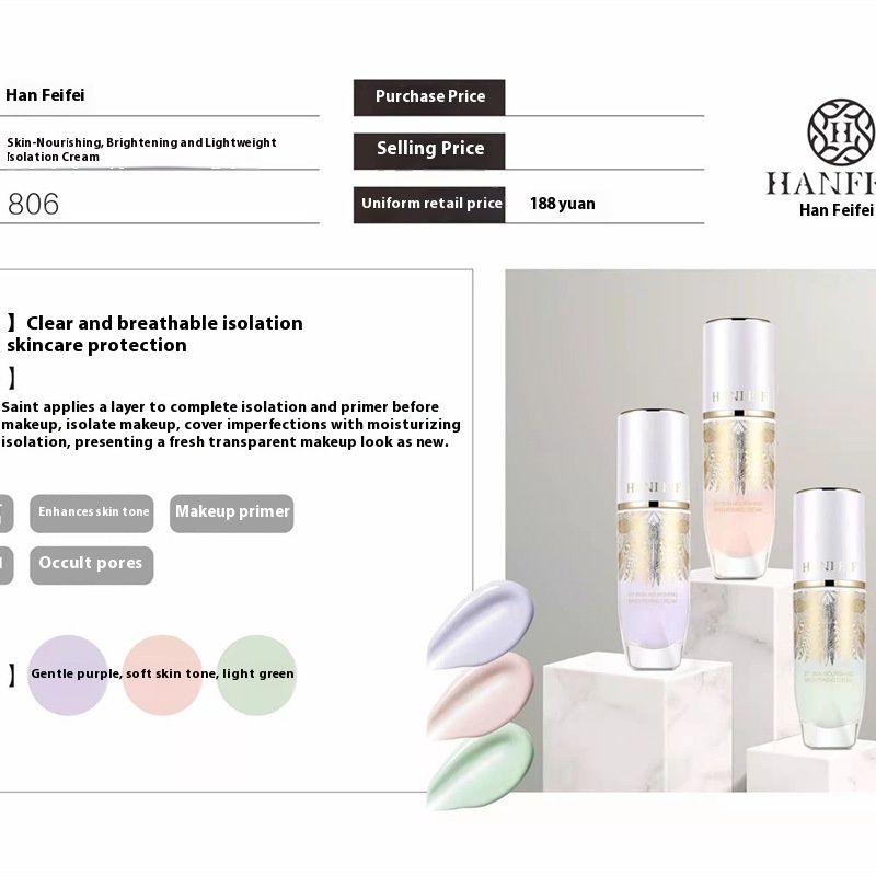 Han Feifei Nourishing Skin Brightening Light Transparent Isolation Cream Moisturizing Concealer Moisturizing Hidden Pores BB Cream Foundation Liquid
