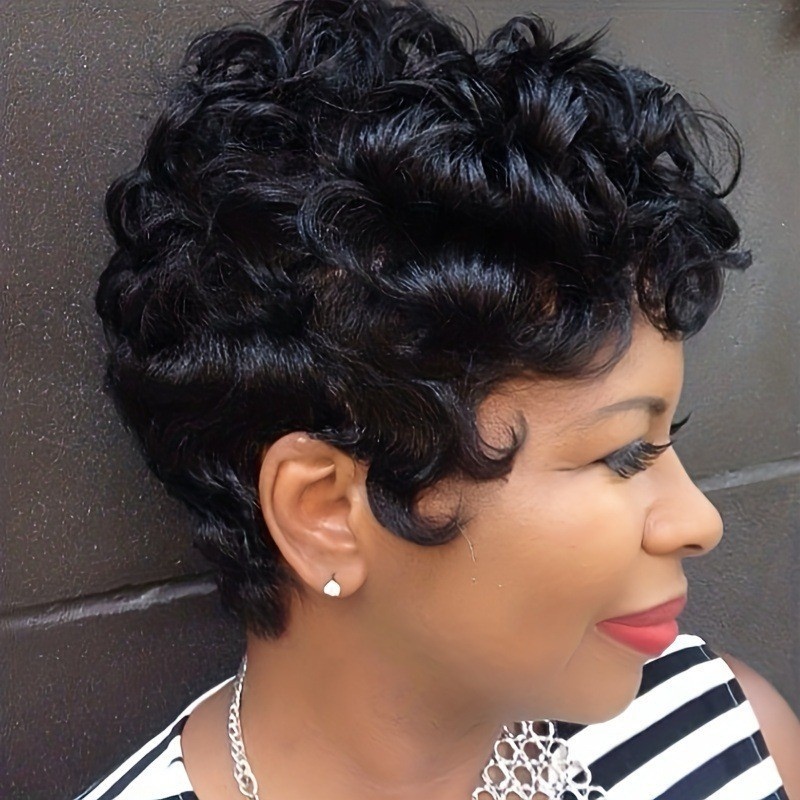 Black Wig European And American WIG Fashion Ladies Short Curly Hair Chemical Fiber Headgear S
