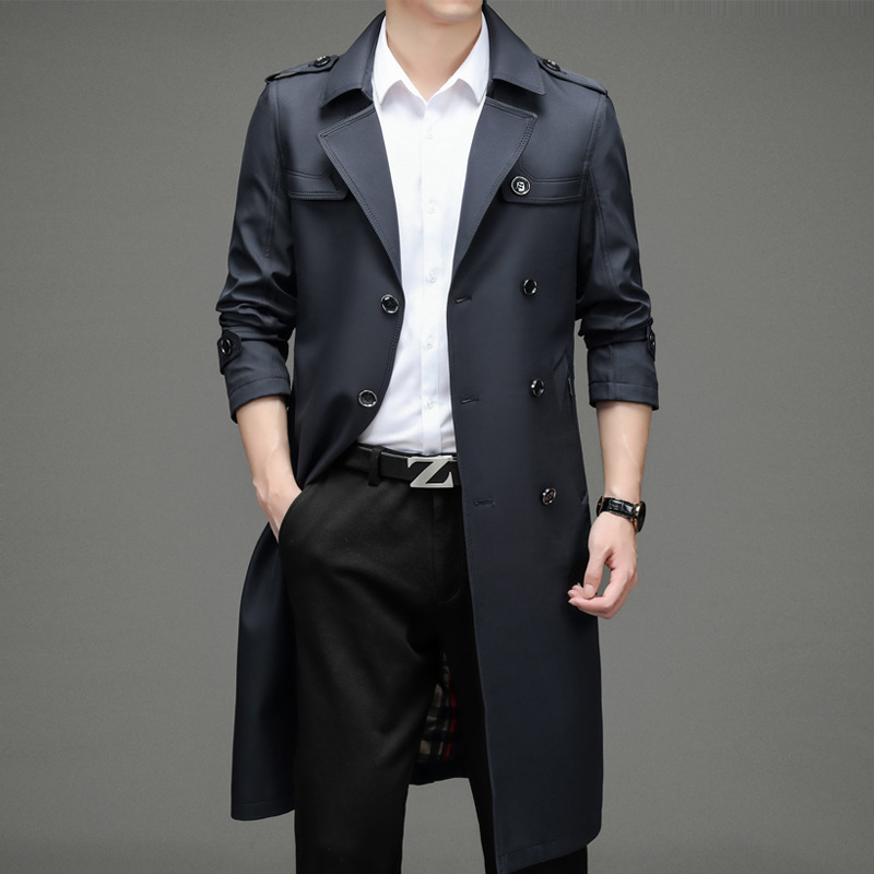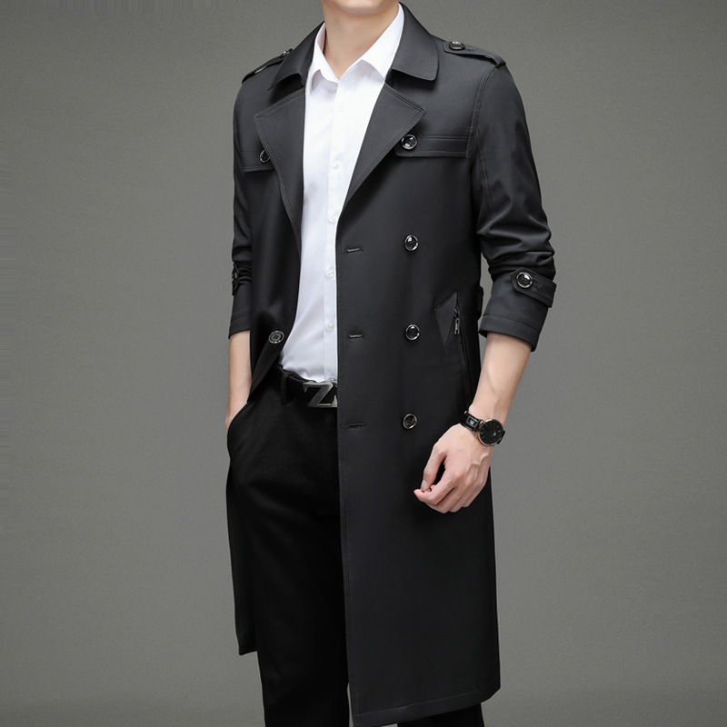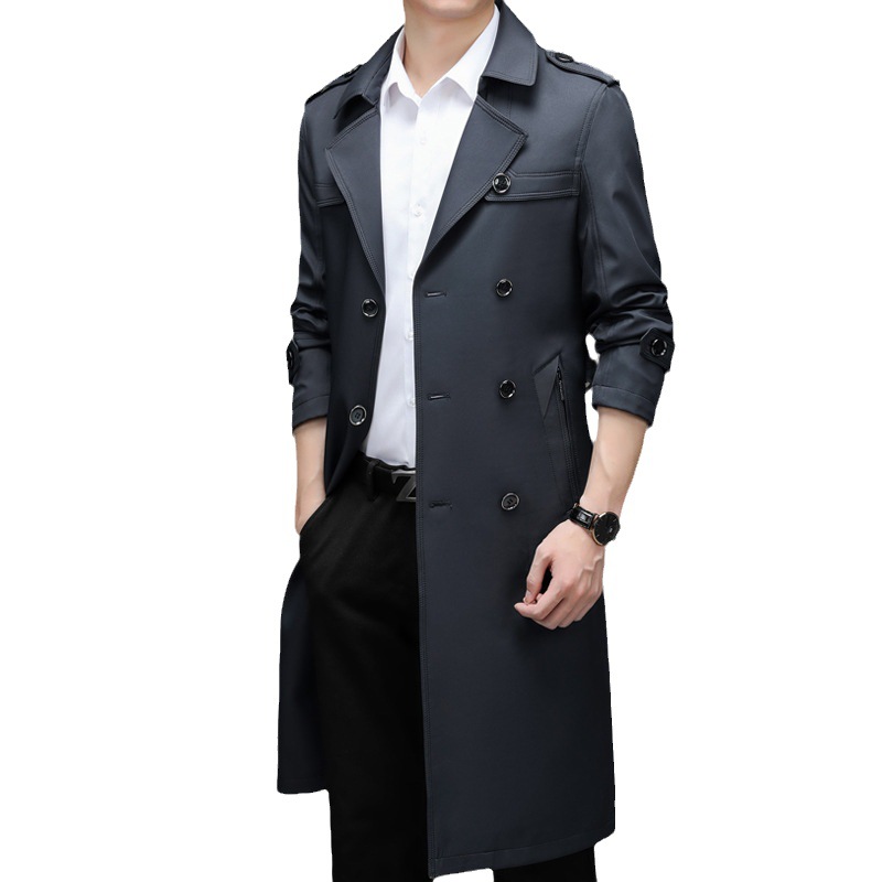 Autumn And Winter Long Suit Collar Splicing Windbreaker Jacket Business Casual Double-breastedy High-end Coat