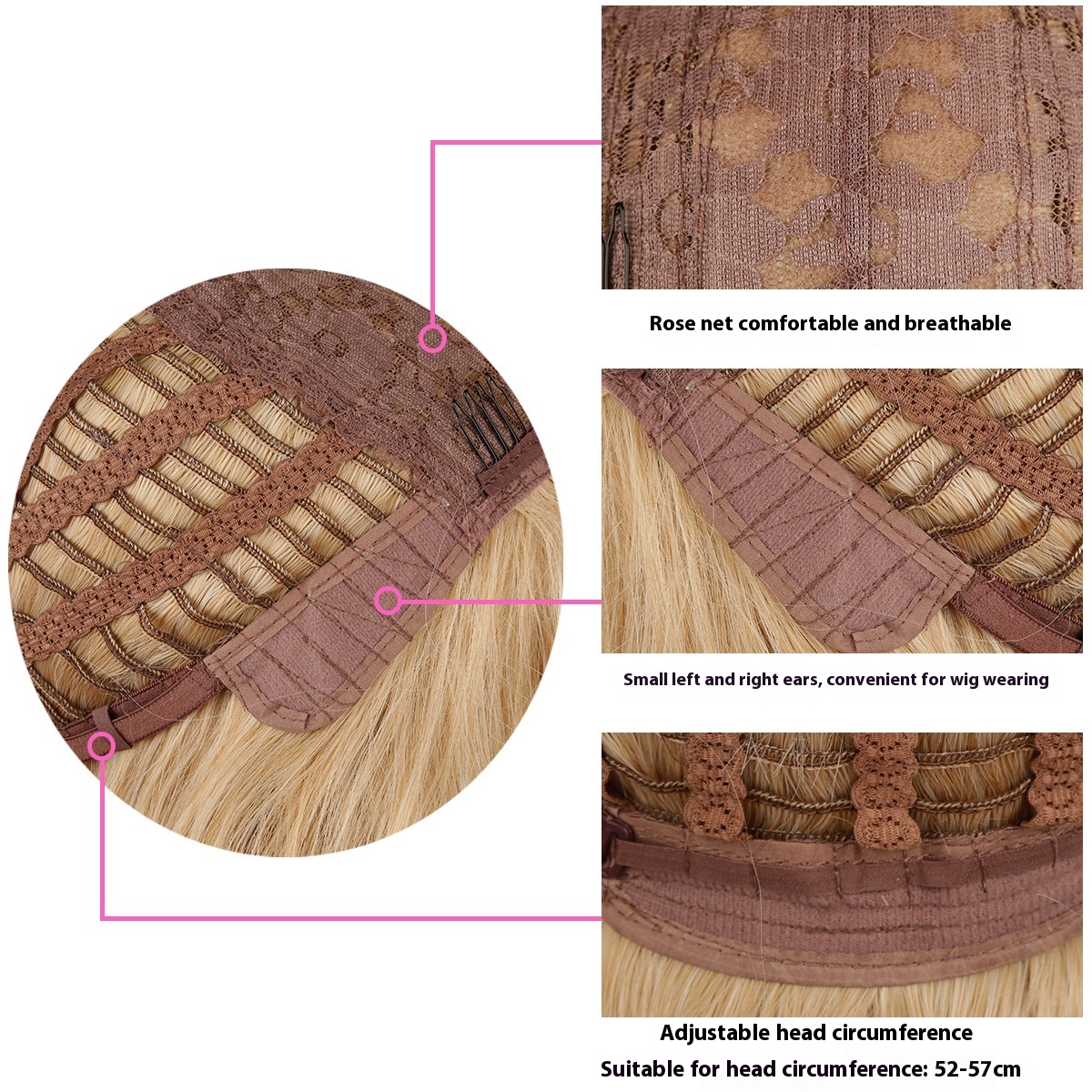 Golden Brown Highlights Neat Bangs Long Curls 28inch Wig Women's Chemical Fiber Full Headgear Yama S
