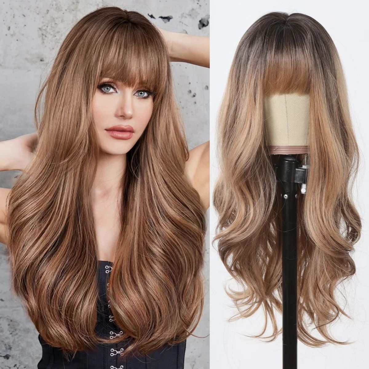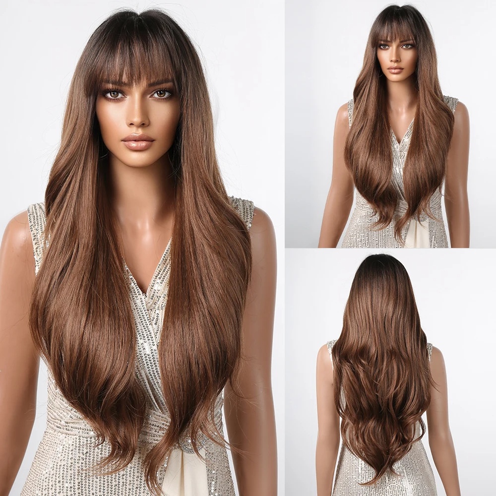 Foreign Trade European And American Fashion Wig Ladies Bangs Gradient Long Curly Lace Full Head Wigs S