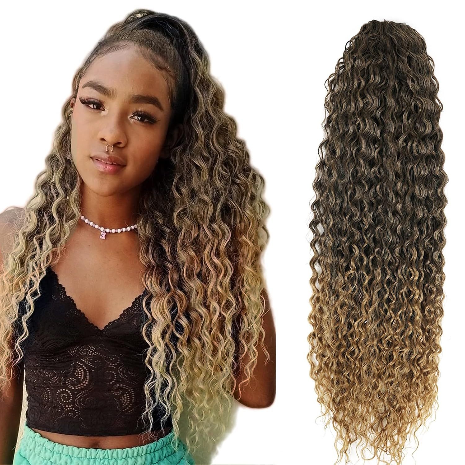 Chemical Fiber Wig Ponytail Drawstring Ponytail Curly Water Curly Hair Ponytail 22 Inch