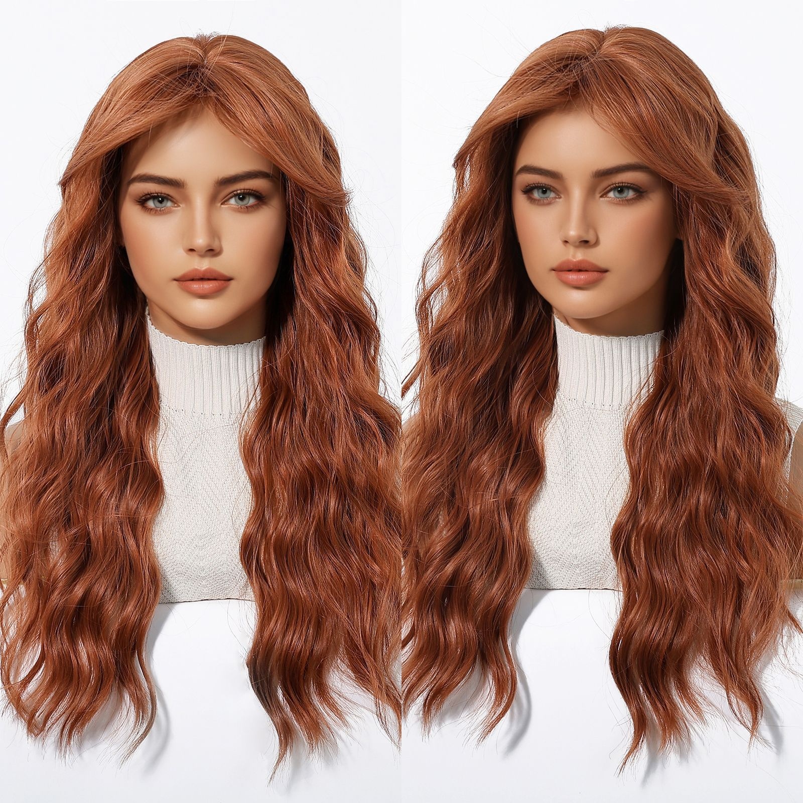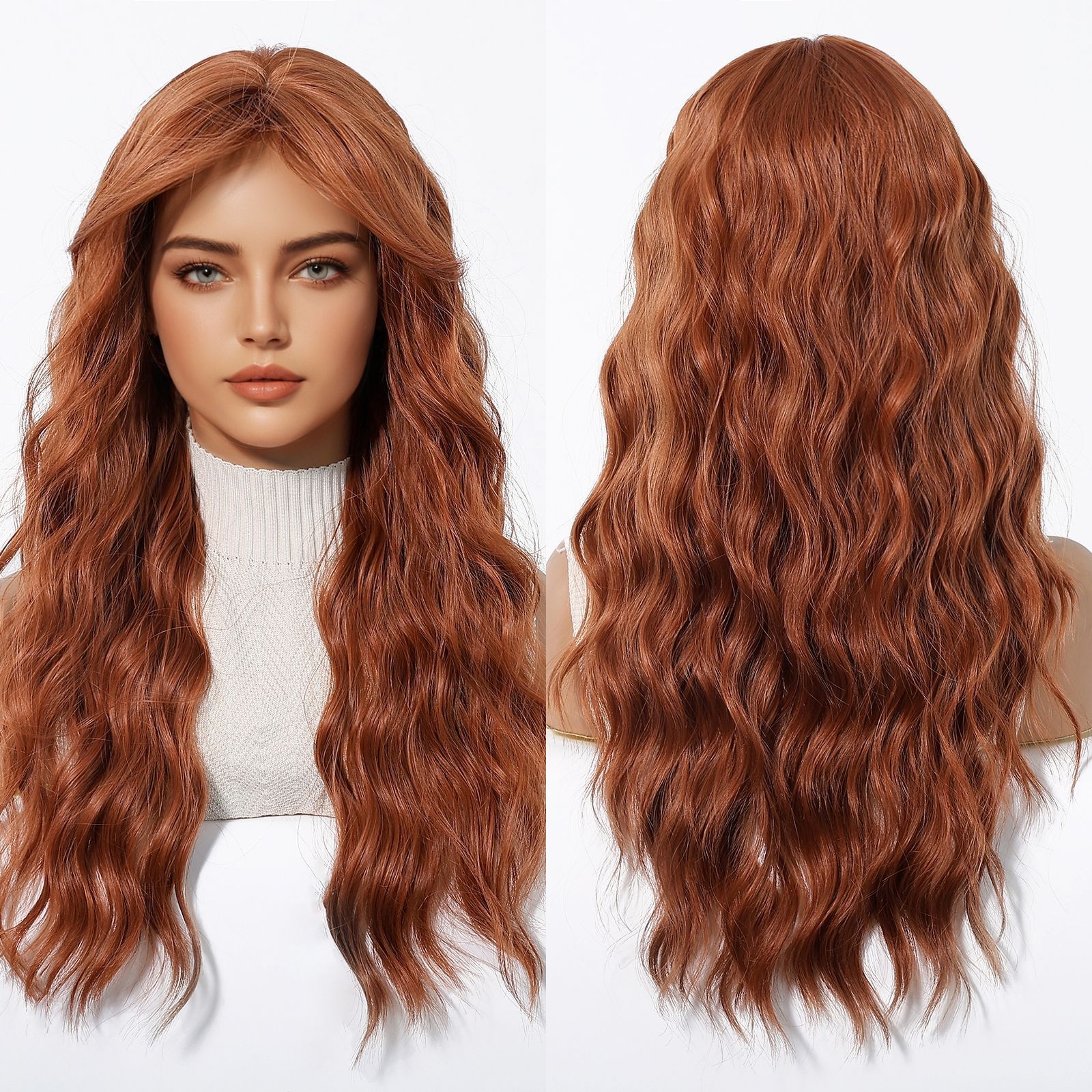 Europe And The United States Wig Women's Orange Long Curly Hair Big Waves Neat Bangs Simulation Breathable Full Head Cover S In Stock