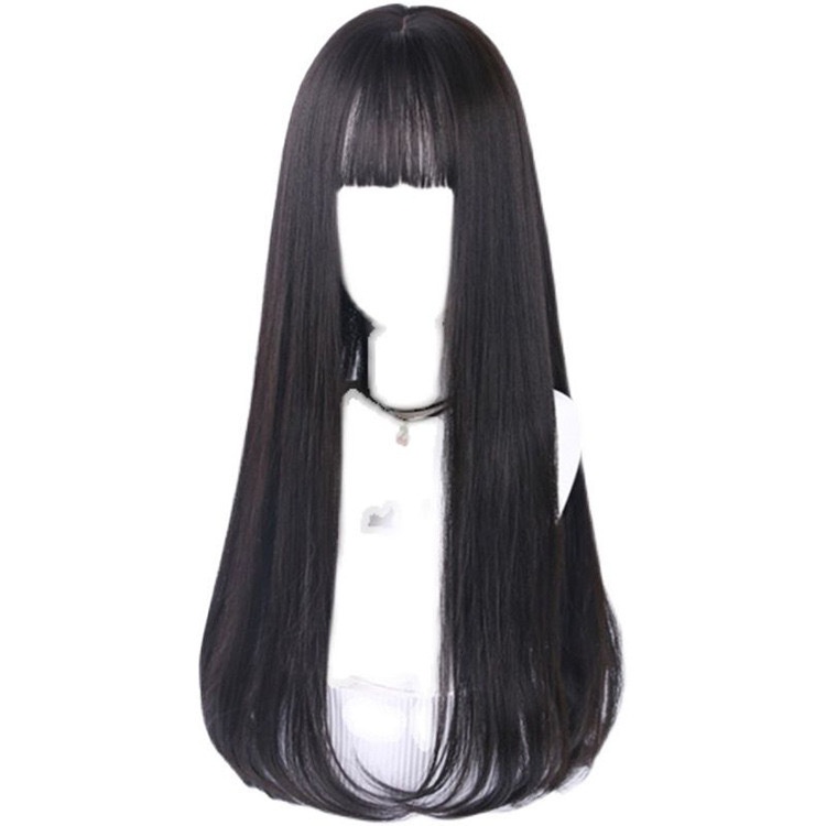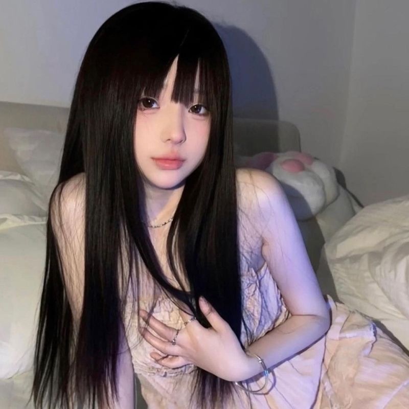 Wig Women's Full Headgear Cyber Red Air Bangs Lolita Pink Daily Girl's Long Straight Hair Artificial Wig Headgear
