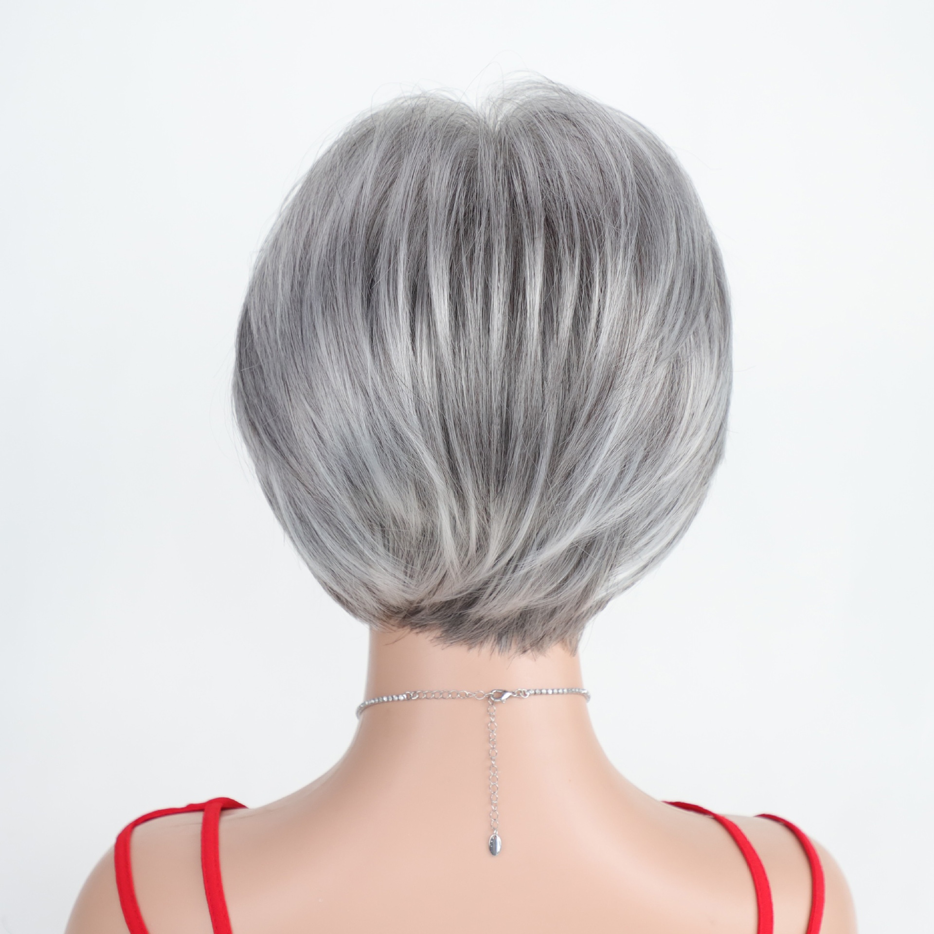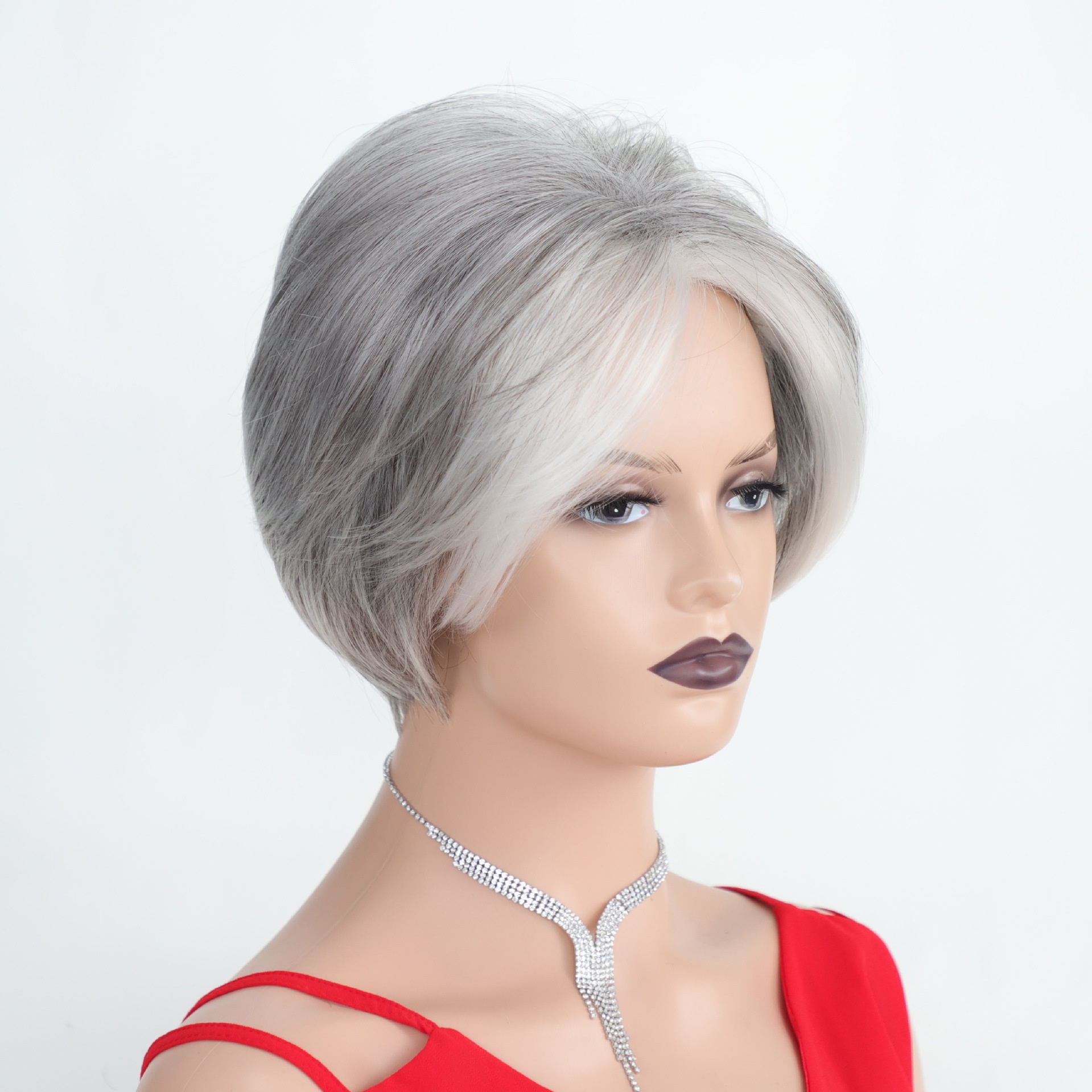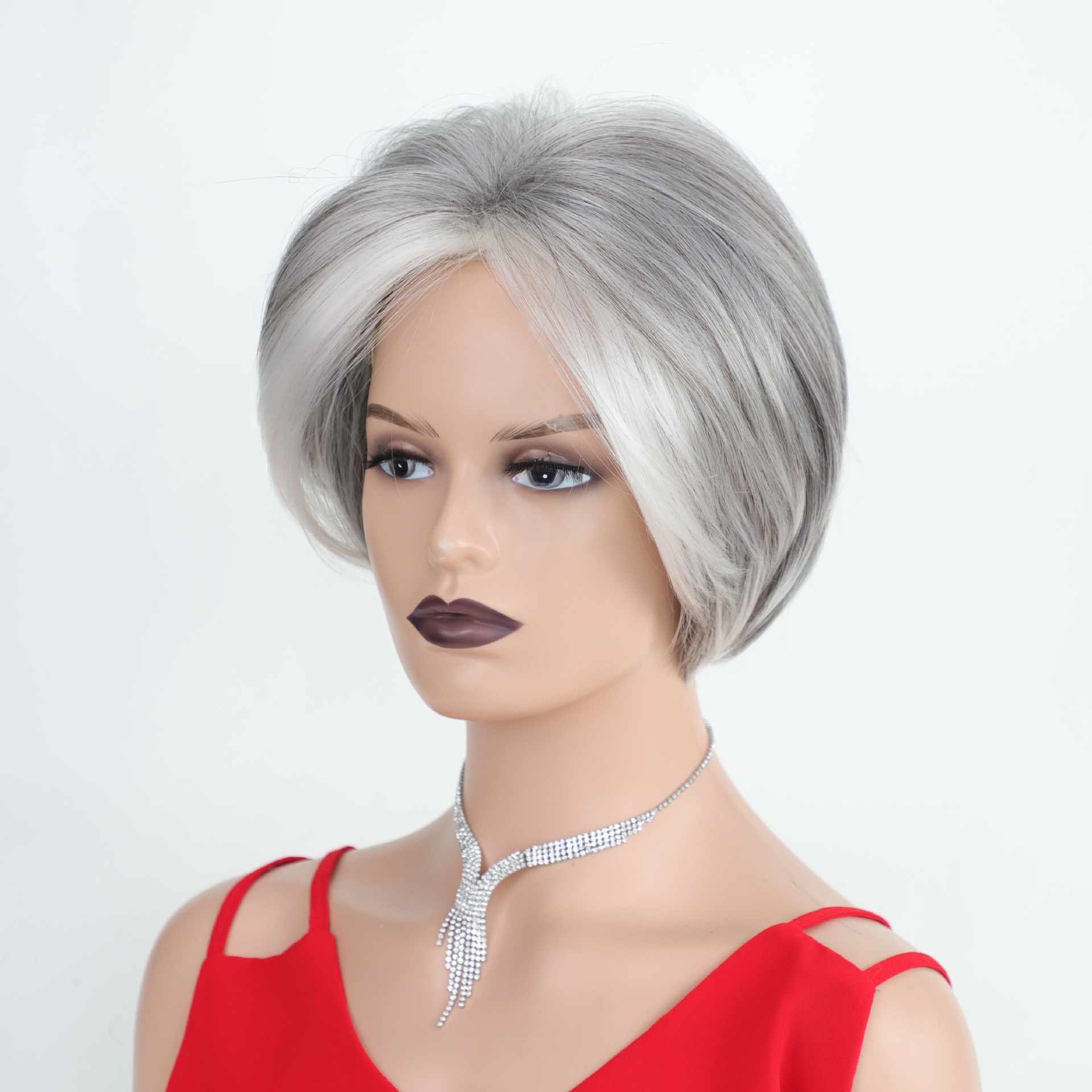 Wig European And American White Wig Fashion Gray Highlights Short Wave Wave Chemical Fiber Head Set A