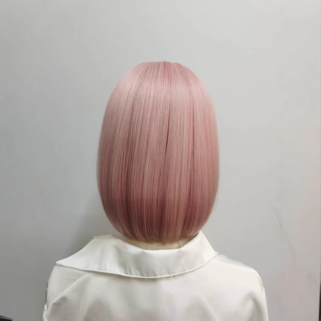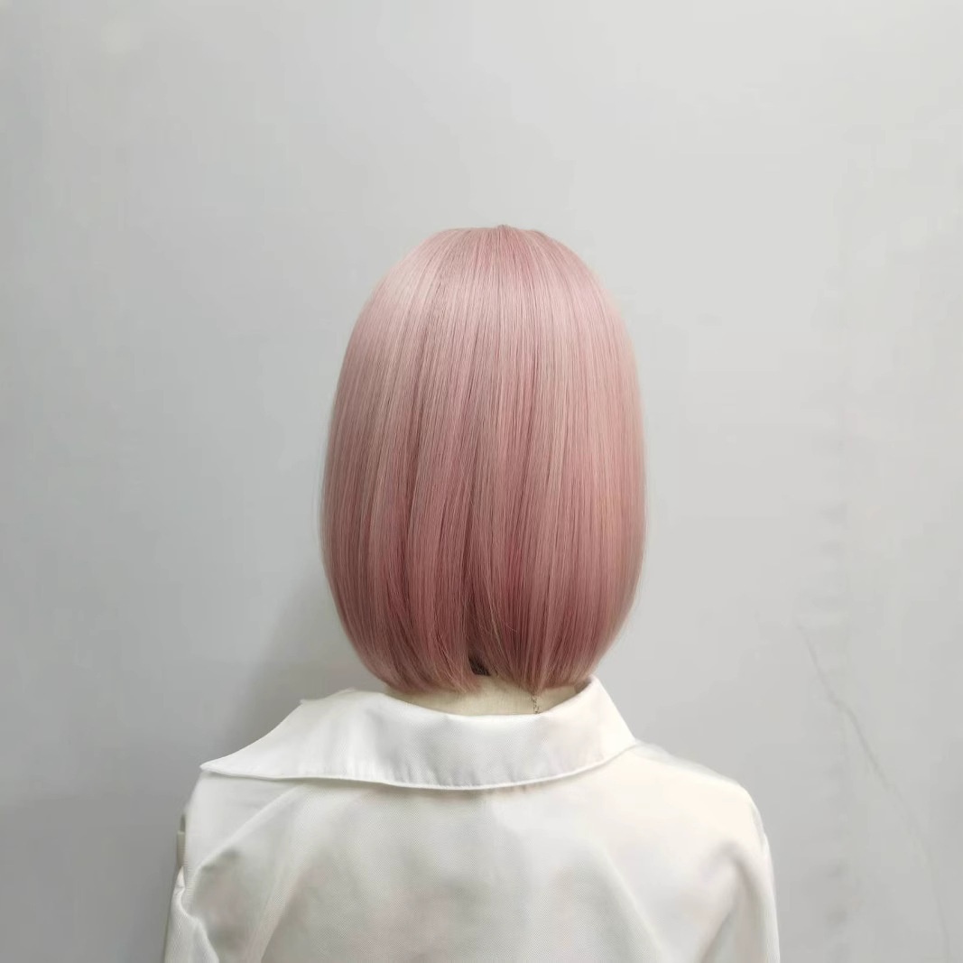 Lina Wig Women's Pink Short Curly Hair Simulation Natural European And American Style Student Hair Age-reducing Short Hair Full Head Cover