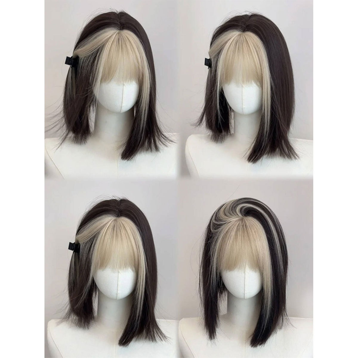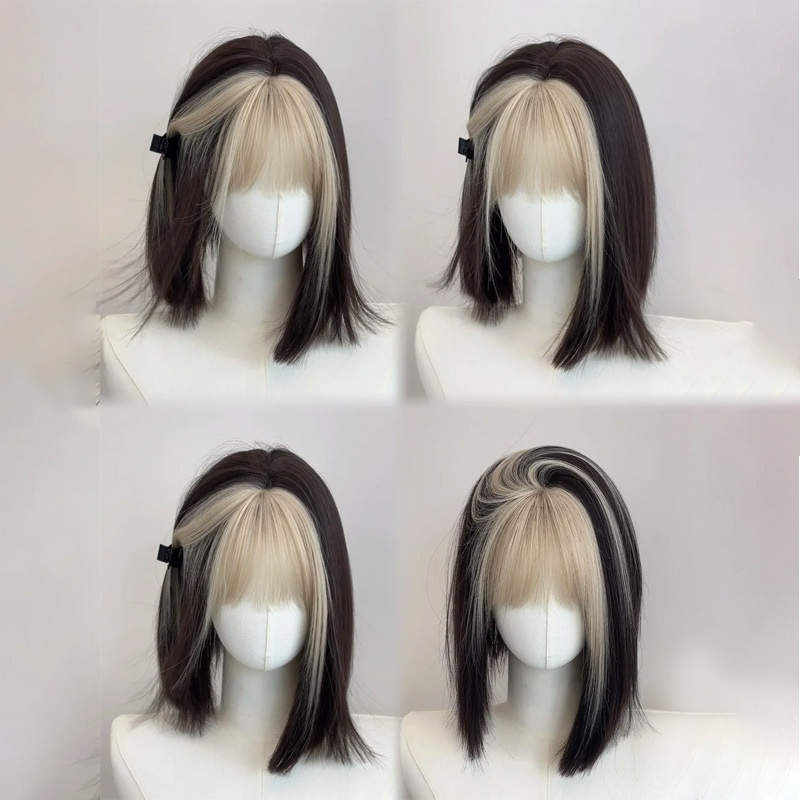 Xuchang Wig Platinum Bangs Dye Short Hair Wig Women's Full Head Natural Simulation Hair One-size-fits-all Short Straight Hair Set