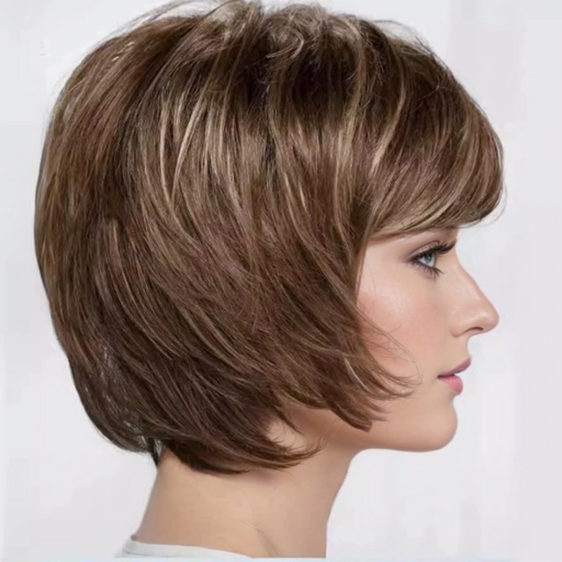 Foreign Trade Ladies Short Straight Hair Fluffy Slanting Bangs Gold White Wig Direct High Temperature Silk A Hair