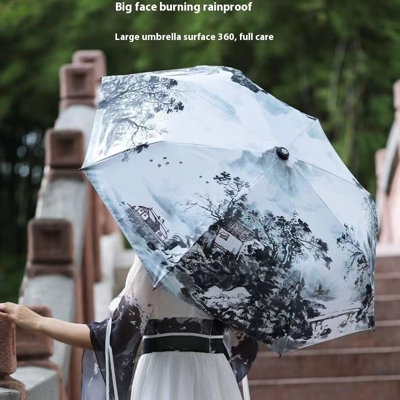 Black Technology Spray Umbrella Cooling Folding Sun Protection Anti-ultraviolet Sun Umbrella For Women Please Dual-purpose Umbrella