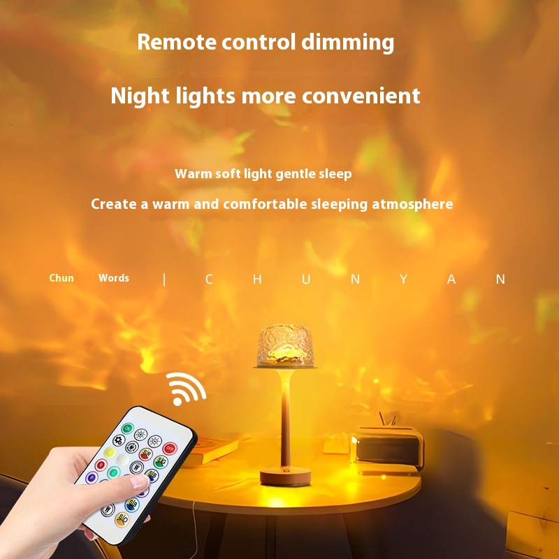 Chun Yan High Foot Water Ripple Atmosphere Table Lamp Romantic Fun Gift Projection Remote Control Nightlight Couple Gift Gift